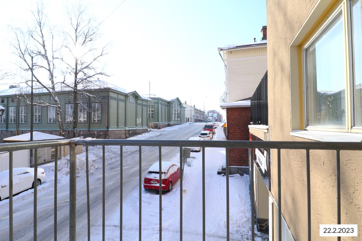 Asunto on katutasosta katsottuna talon toisessa kerroksessa.