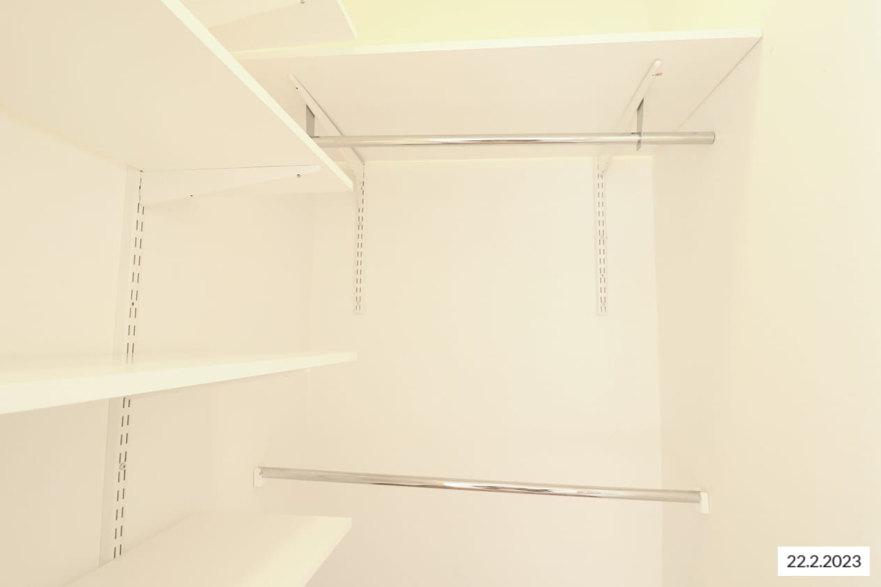 Peruskorjatun kodin lattiat ovat tammilaminaattia ja kylpyhuone kaakeloitu. Keittokomerossa on jää-pakastinkaappi ja sähköliesi.