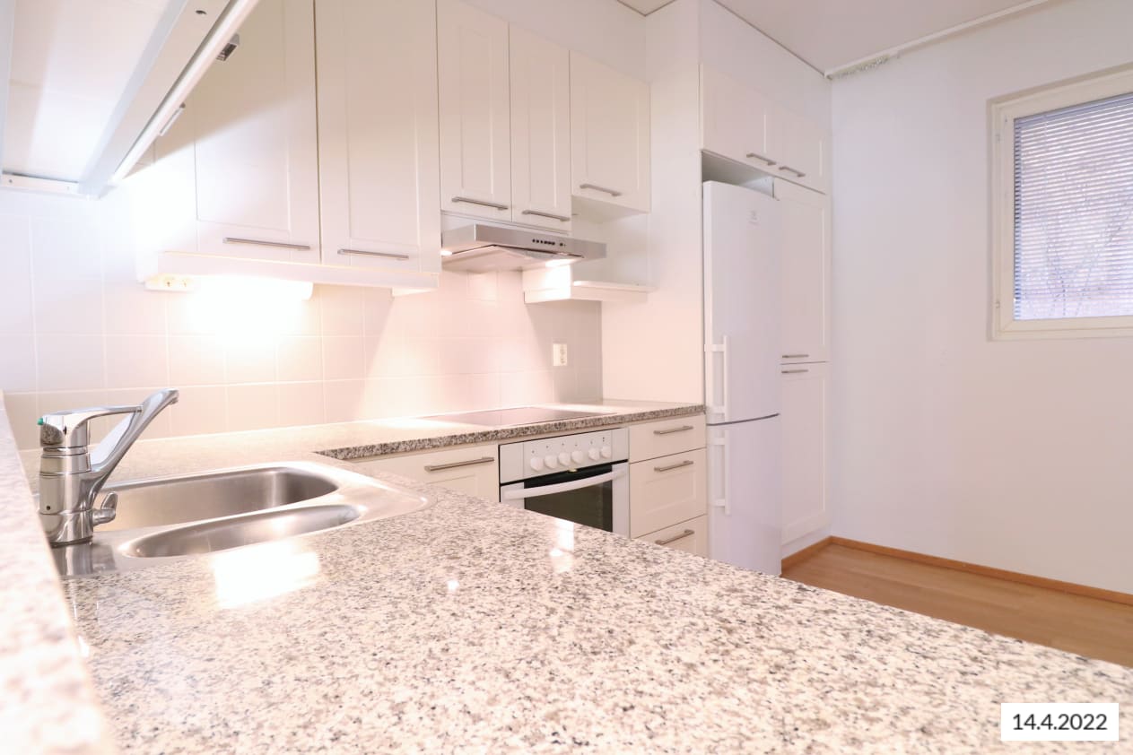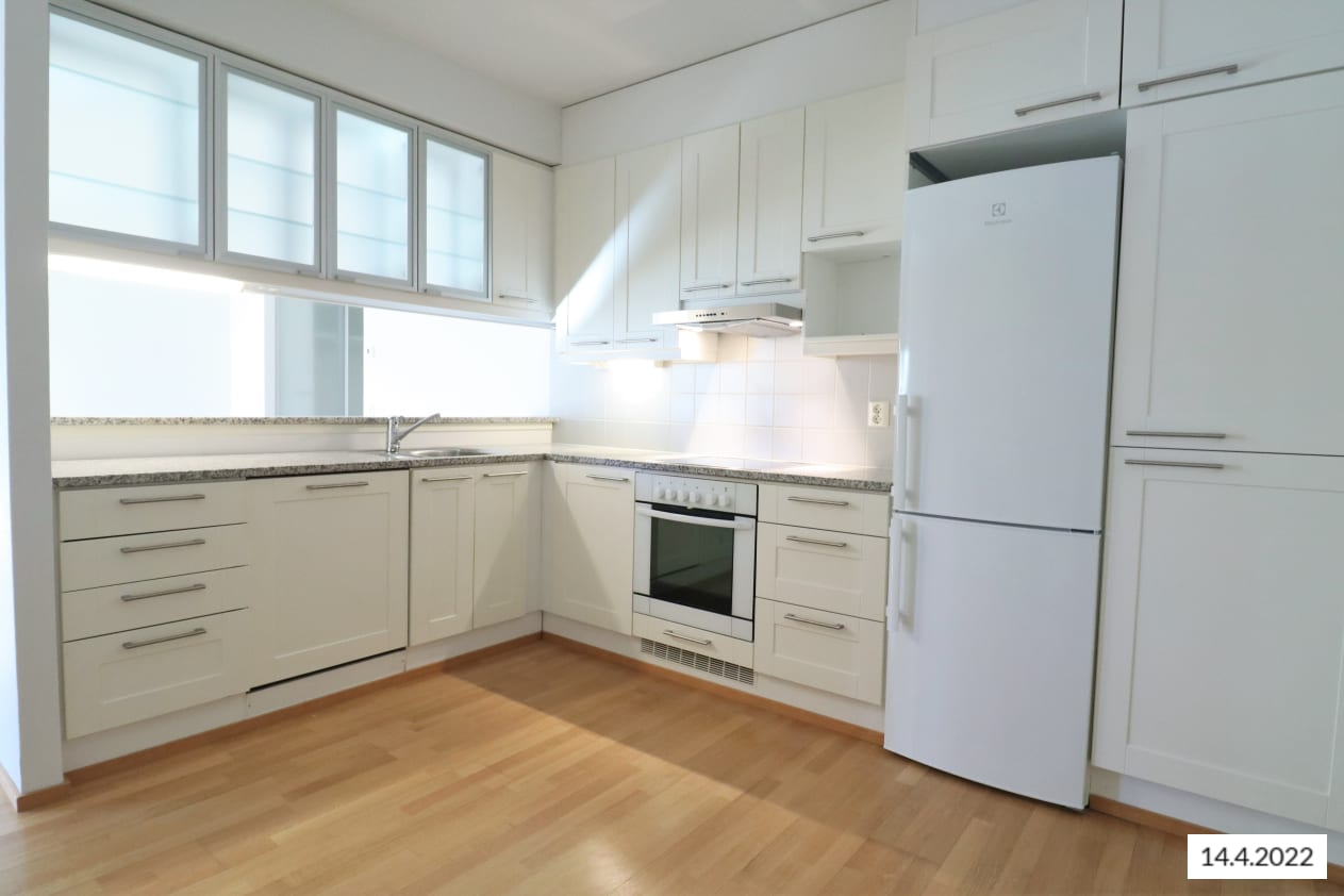 Upea vuokra-asunto merellisessä Korppolaismäessä. Lattiat tammiparkettia ja seinissä valkoiseksi maalattu lasikuitutapetti, kylpyhuoneessa laatoitus. Keittiön työtasot kiveä. Yksi autohallipaikka sisältyy vuokraan.