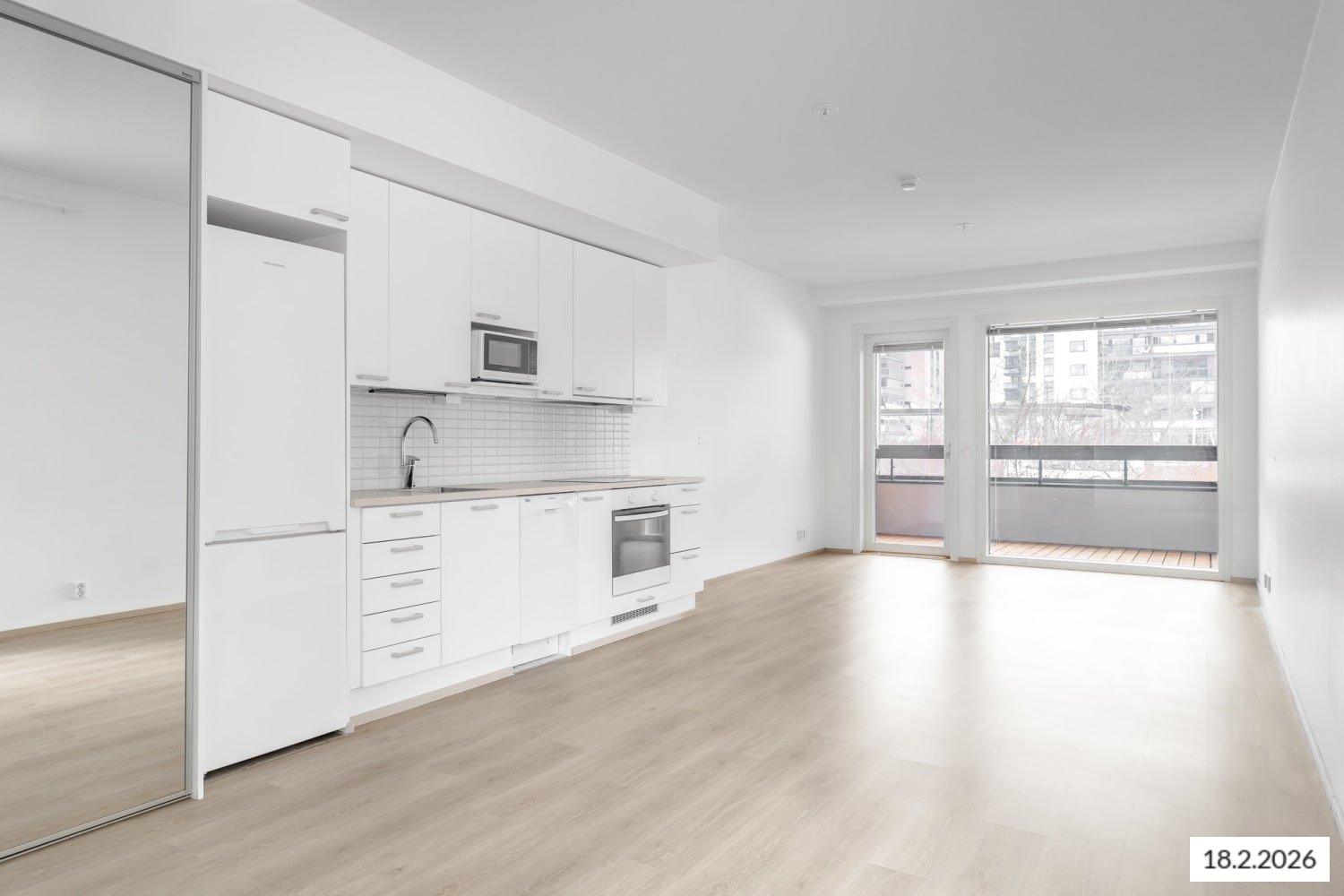 Valoisa vaaleasävyinen yksiö