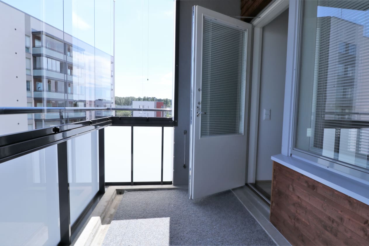 Kodikkaan kaksion keittiötilat yhdistyvät oleskelutiloihin, jotka on helppo kalustaa mieleiseksi. Keittiön yhteydessä on mukava tila ruokapöydälle ja olohuoneesta pääsee lasitetulle parvekkeelle, jossa kelpaa nauttia aamukahvit. Makuuhuoneen yhteydessä on säilytystilaa ylellisen kokoisessa vaatehuoneessa.