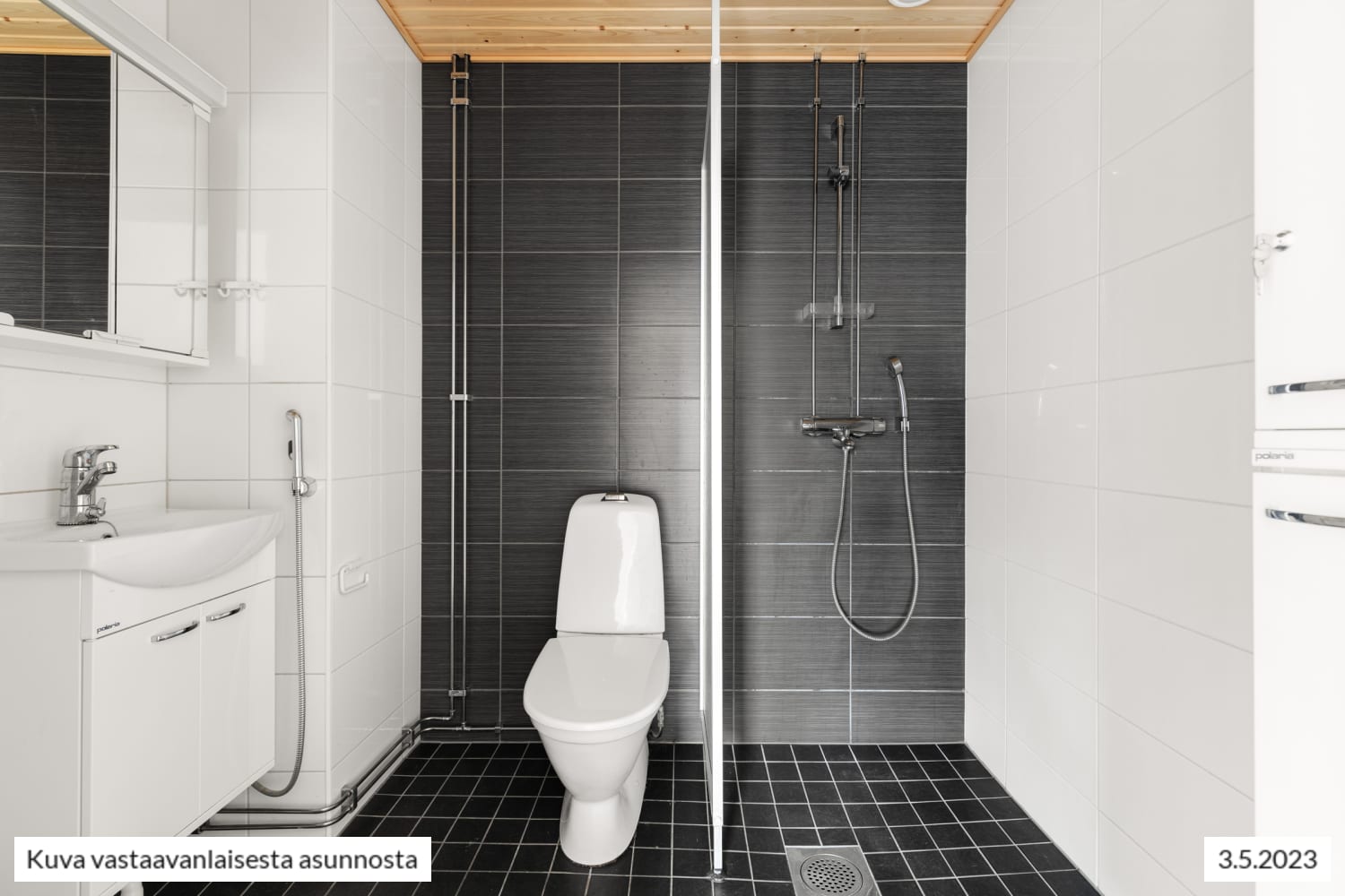 Keittiössä on keraaminen liesi ja astianpesukone sekä kätevä kokkaussaareke. Makuuhuoneessa on runsaasti kaappitilaa. Kylpyhuoneessa on paikka pyykinpesukoneelle ja kätevä pyykkikaappi.