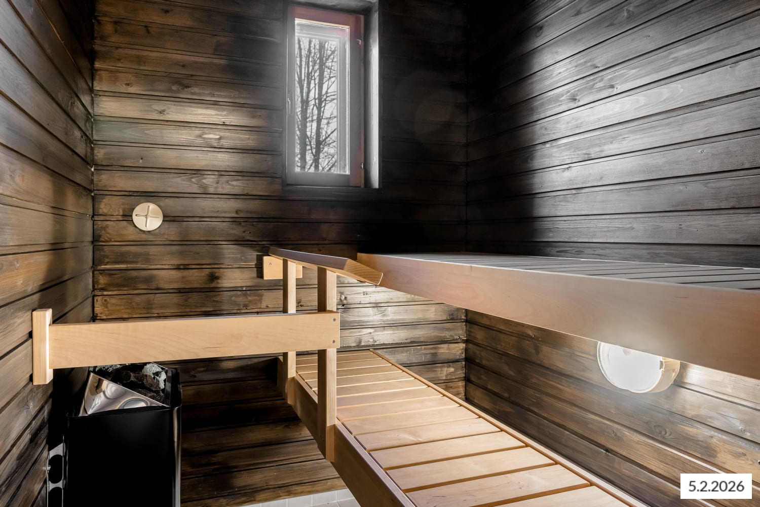 Kodikkaassa kaksiossa on oma sauna, jossa voit rentoutua kiireisen päivän päätteeksi. Saunan löylyjen jälkeen on ihana vilvoitella omalla parvekkeella ja nauttia rauhallisesta ympäristöstä.