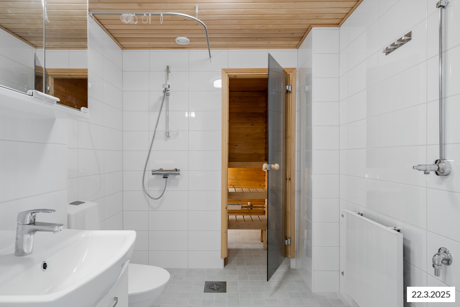 Keittiössä on tilaa astianpesukoneellesi. Jääkaappi-pakastin ja perinteinen liesi kuuluvat varustukseen. Edustava kylpyhuone saunoineen kutsuu rentoutumaan. Myös pyykkikoneelle on paikka ja liitännät valmiina.