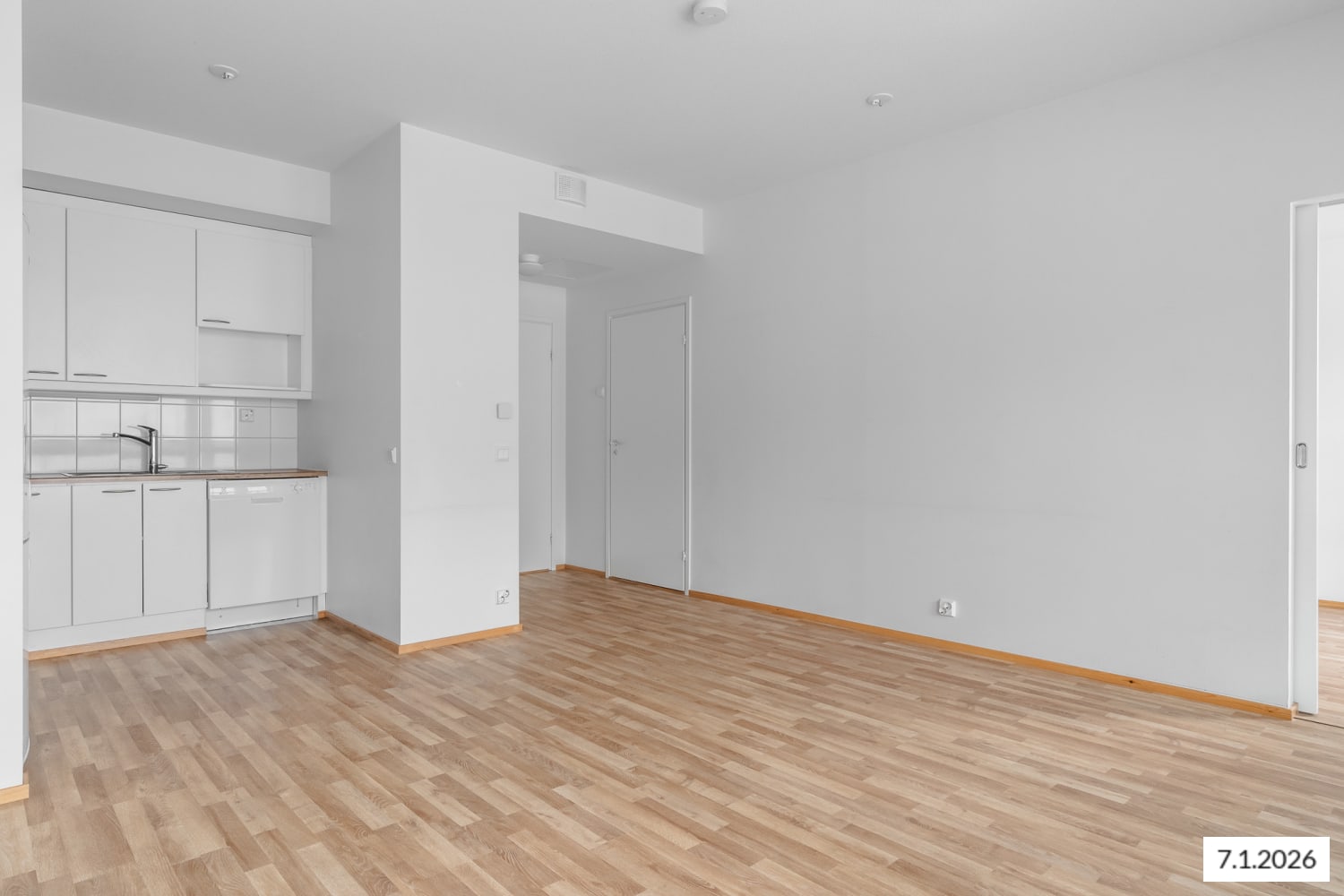 Keittiökalusteet ovat raikkaan valkoisia, tilaa on myös astianpesukoneellesi. Kylpyhuoneessa on liitännät pesukonetta varten, ja laatoitetut pinnat tekevät tilasta helppohoitoisen ja tyylikkään.