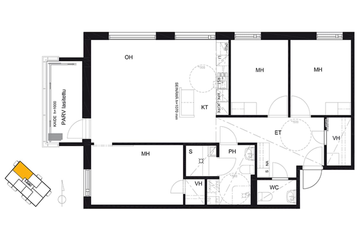 Vaaleasävyisten asuntojen pohjaratkaisut ovat käytännöllisiä ja helposti kalustettavia. Kaikissa kodeissa on vaatehuone, isommissa asunnoissa jopa kaksi, sekä oma sauna, jonka löylyissä kelpaa rentoutua. Lasitetut parvekkeet tarjoavat viihtyisää lisätilaa oleskeluun. Lattiat ovat laminaattia ja keittiökalusteet ja kodinkoneet ovat raikkaan valkoisia. Kylpyhuoneet on laatoitettu ja niissä on pesukonetta varten liitännät ja tilavaraus.