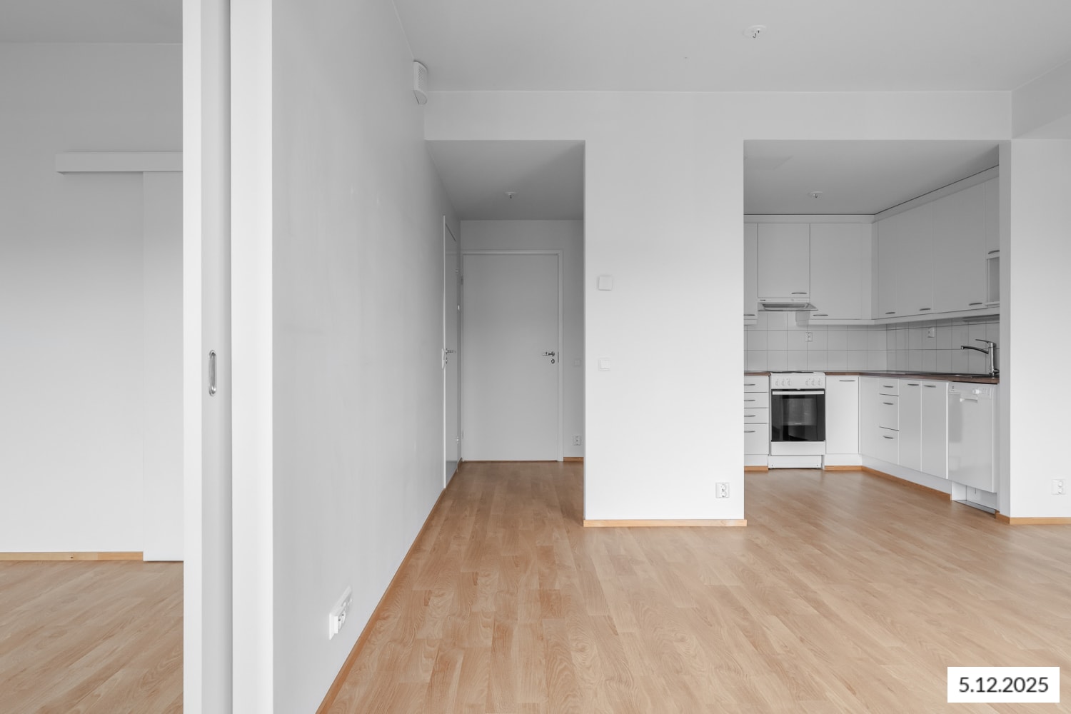 Lattiat ovat tammilaminaattia ja keittiökalusteet ja kodinkoneet ovat raikkaan valkoisia. Keittiön varustukseen kuuluu astianpesukone, jääkaappipakastin, lattiauuni ja liesi. Kylpyhuoneet on laatoitettu vaalean harmailla laatoilla ja niissä on pesukonetta varten liitännät ja tilavaraus.