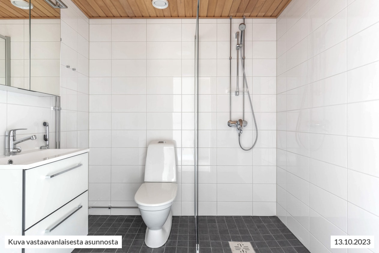 Raikkaassa kylpyhuoneessa on tilaa nauttia kylpyhetkistä ja laittautua. Siellä on myös paikka ja liitännät omalle pyykinpesukoneelle ja kuivausrummulle. Tämä asunto, taloyhtiö, parvekkeet ja piha-alue ovat savuttomia.