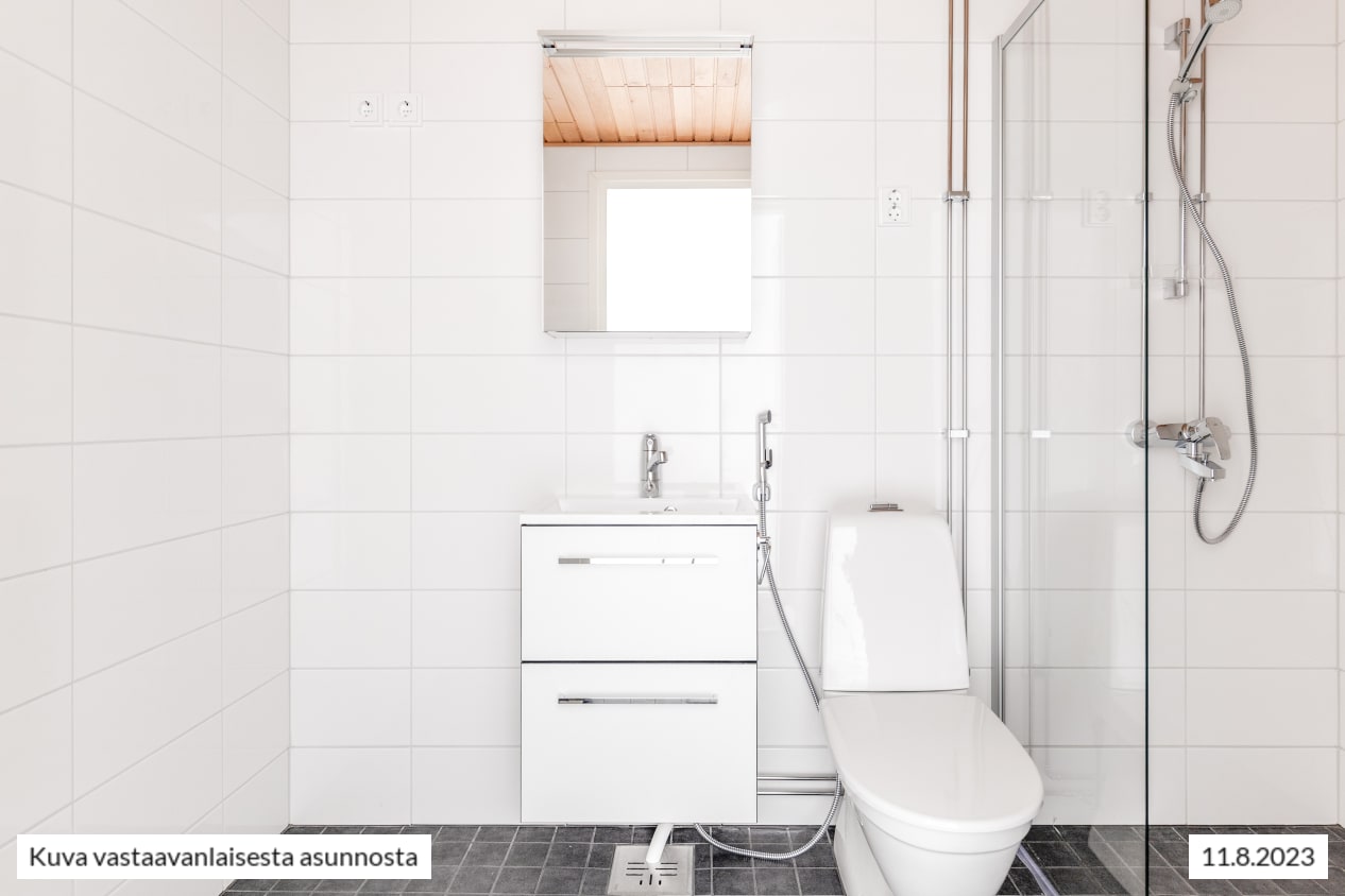Raikkaassa kylpyhuoneessa on tilaa nauttia kylpyhetkistä ja laittautua. Siellä on myös paikka ja liitännät omalle pyykinpesukoneelle ja kuivausrummulle. Tämä asunto, taloyhtiö, parvekkeet ja piha-alue ovat savuttomia.