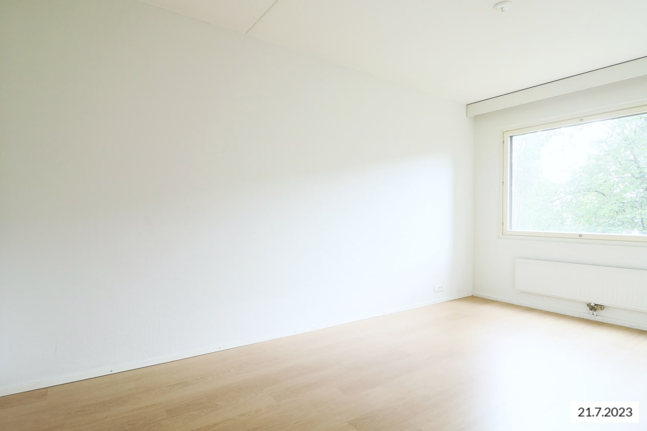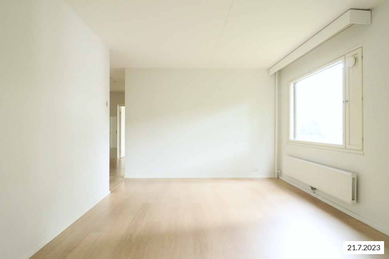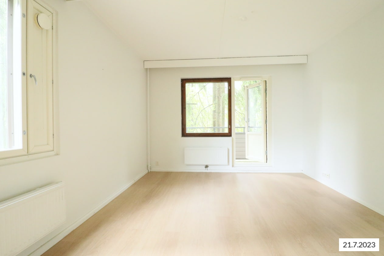 Raikkaan valkoisen keittiön varustukseen kuuluu pyykinpesukone, jääkaappipakastin, lattiauuni sekä perinteinen liesi. Raikkaasta ilmasta saa nauttia kaikessa rauhassa kodin parvekkeella, josta avautuu vehreät maisemat. Kylpyhuoneen seinät on laatoitettu ja omaa tilavarauksen astianpesukoneelle. Olisiko tässä uusi vuokrakotisi?