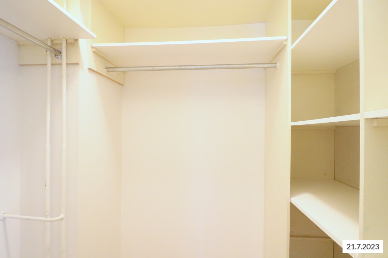 Tässä vaaleansävyisessä kolmiossa on toimiva pohjaratkaisu sekä valoisat puitteet. Seinät on maalattu valkoisiksi, tehden neutraalin pohjan mille tahansa sisustustyylille. Säilytystilaa on mukavasti makuuhuoneiden korkeissa kaapeissa sekä erillisessä vaatehuoneessa.