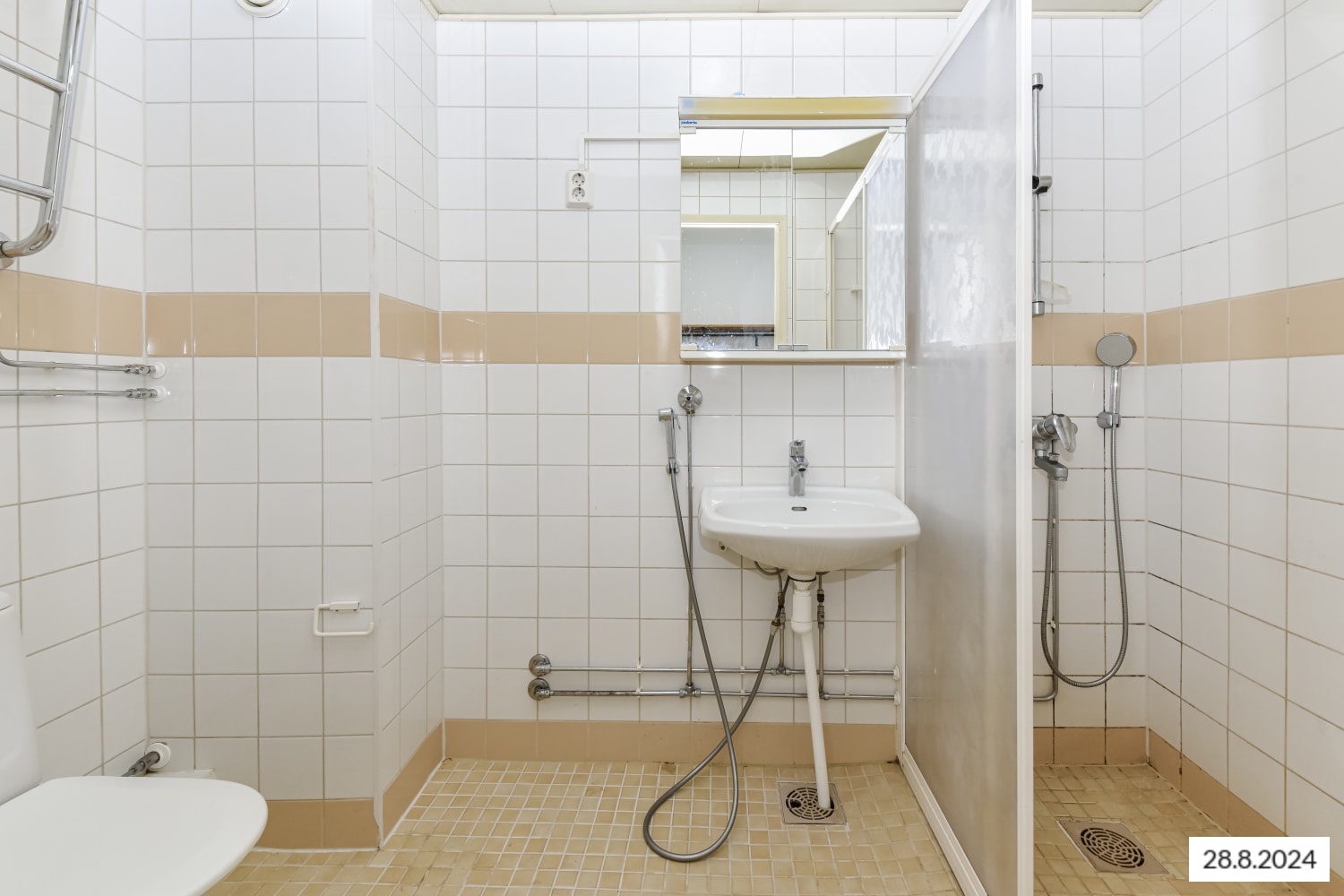 Keittiö on varustettu jää-pakastinkaapilla ja nelilevyisellä sähköliedellä. Astianpesukoneellesi on tilaa, joten arjen askareet sujuvat vaivattomasti. Kylpyhuone on kaakeloitu, ja siellä on paikka myös pyykkikoneelle.