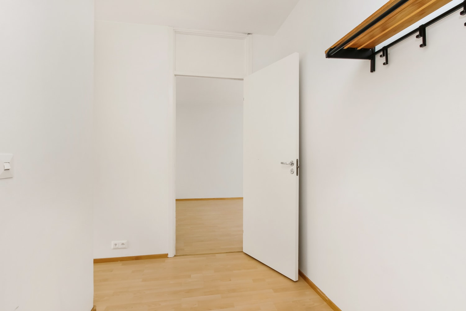 Valoisassa kaksiossa on kodikas ja helposti kalustettava, perinteinen huonejärjestys. Olohuoneesta pääsee lasitetulle parvekkeelle, josta avautuu näkymä länteen metsikön suuntaan.