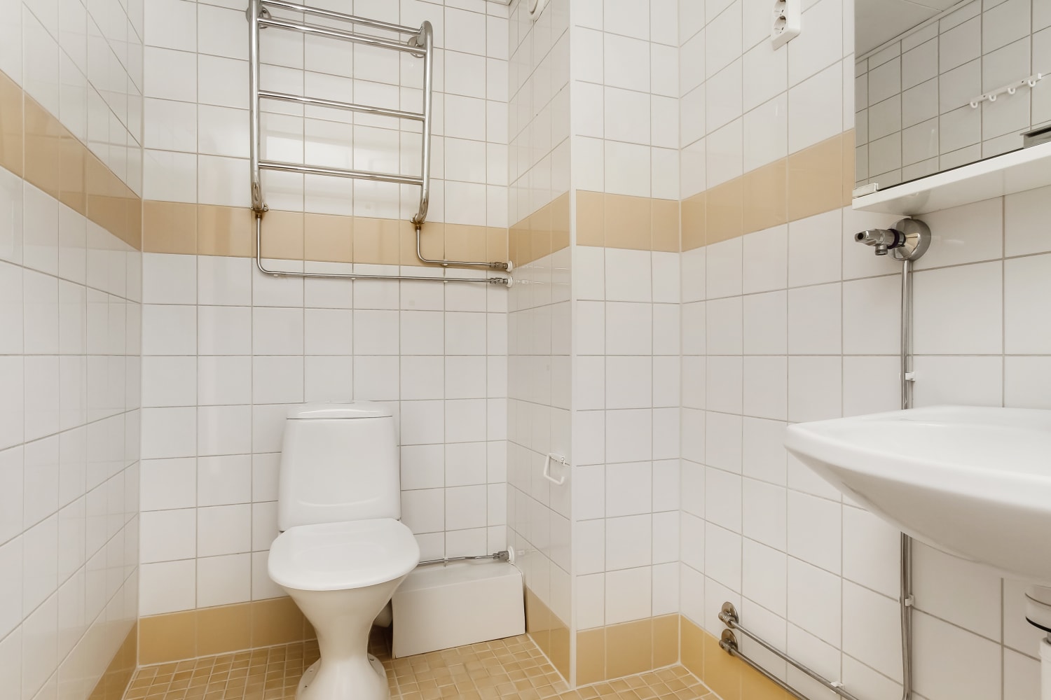 Keittiössä on perinteinen liesi ja jää-pakastinkaappi, astianpesukoneellesikin on tilaa. Lattia on helposti puhtaana pidettävää muovimattoa, joka ei roiskeista säikähdä. Muissa huoneissa on laminaattilattiat, jotka tuovat tilaan kodikasta tunnelmaa. Kylpyhuone on kaakeloitu ja siellä on tila pyykkikoneellesi.