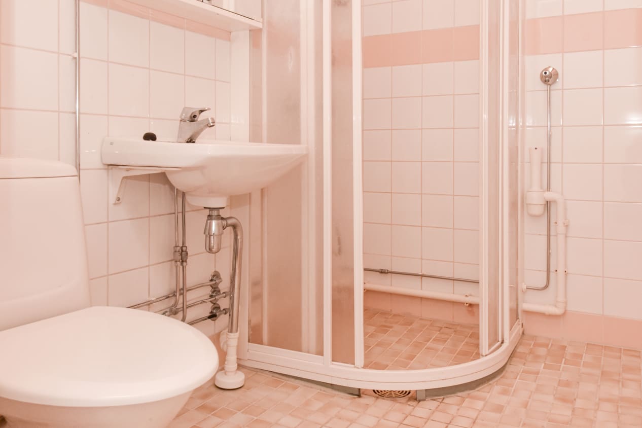Keittokomerossa on ikkuna, vaniljanvaaleat kaapistot ja jääkaappi-pakastin. Kylpyhuone on kaakeloitu ja siellä on pyykinpesukoneelle liitäntä valmiina.