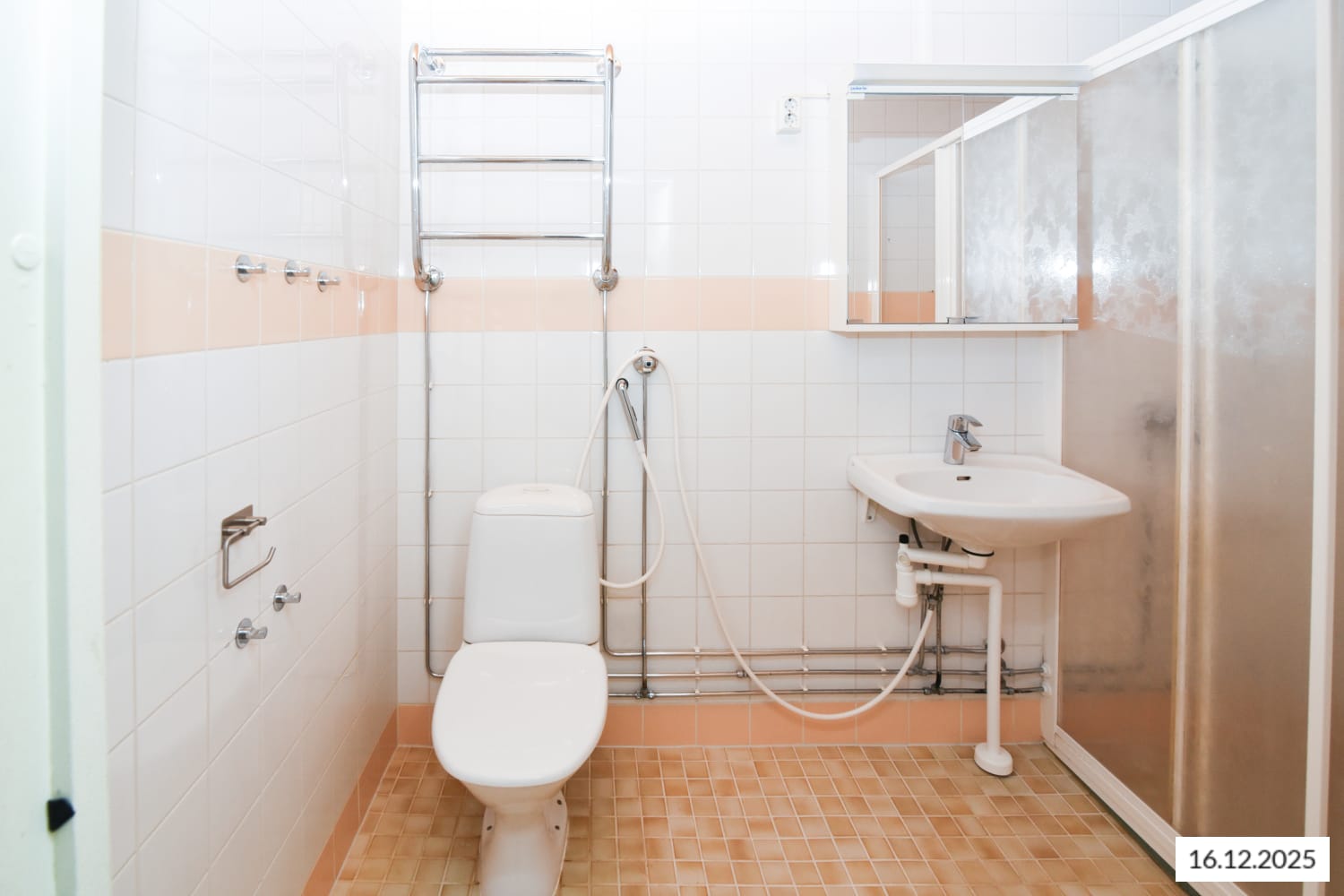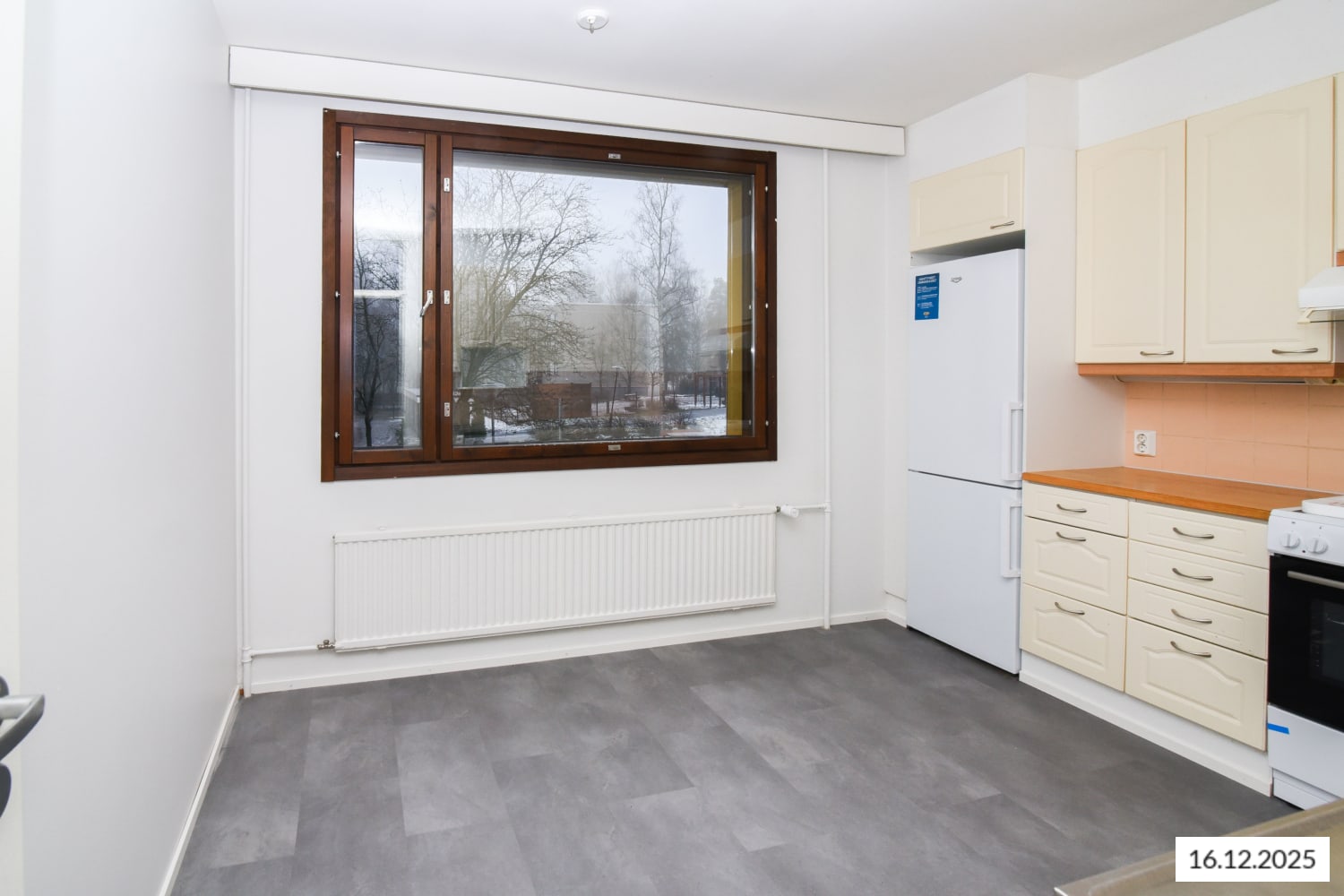 Keittiössä on vaniljanvaaleat kaapistot ja tilaa astianpesukoneellesi. Kylpyhuone on kaakeloitu ja pesukoneelle löytyy liitännät. Asuinhuoneiden lattiamateriaalina on vaalea laminaatti.