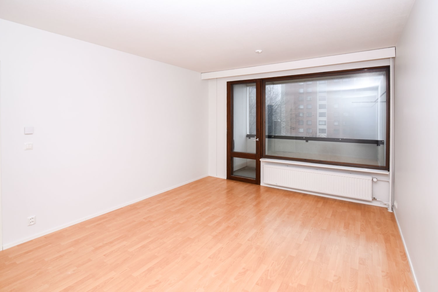 Valoisa kaksio kutsuu viihtymään. Olohuoneesta avautuu lasitettu parveke, joka tarjoaa mukavan paikan rentoutua.