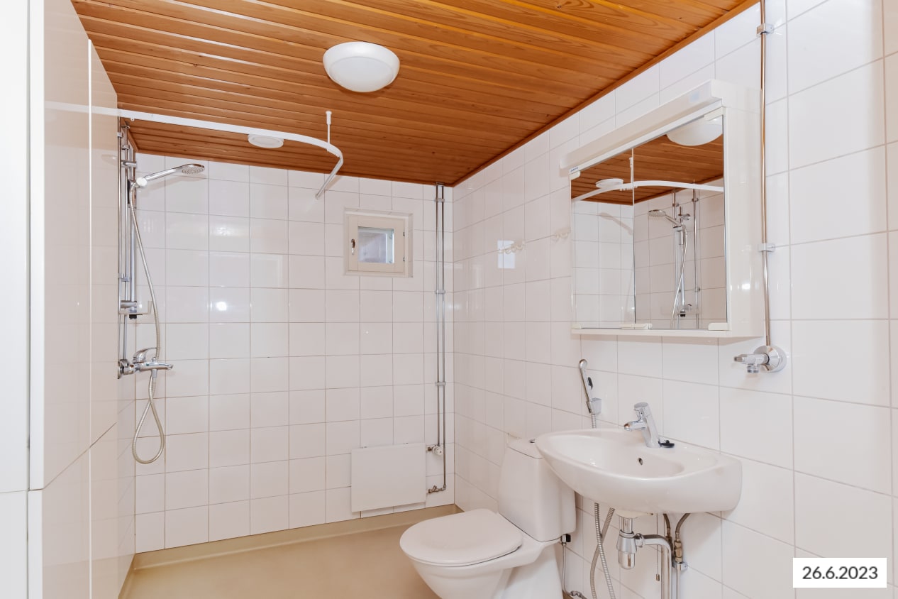 Tilavassa kylpyhuoneessa on pesukonetta varten tilavaraus ja liitännät.