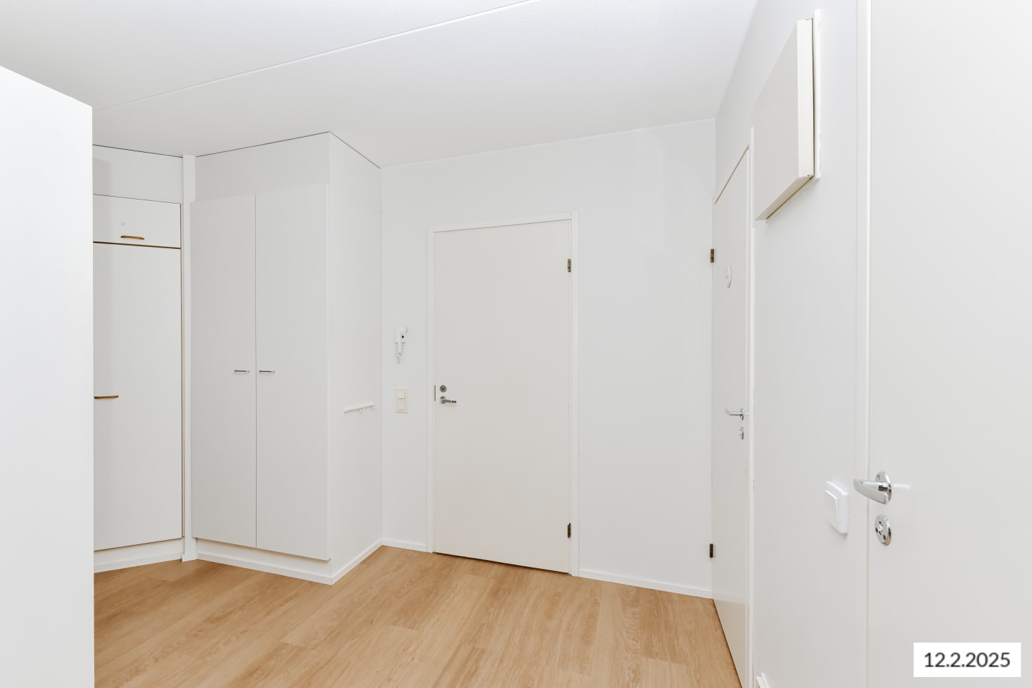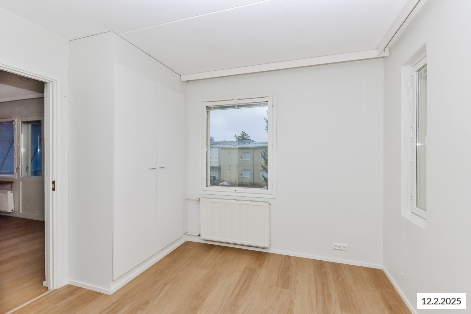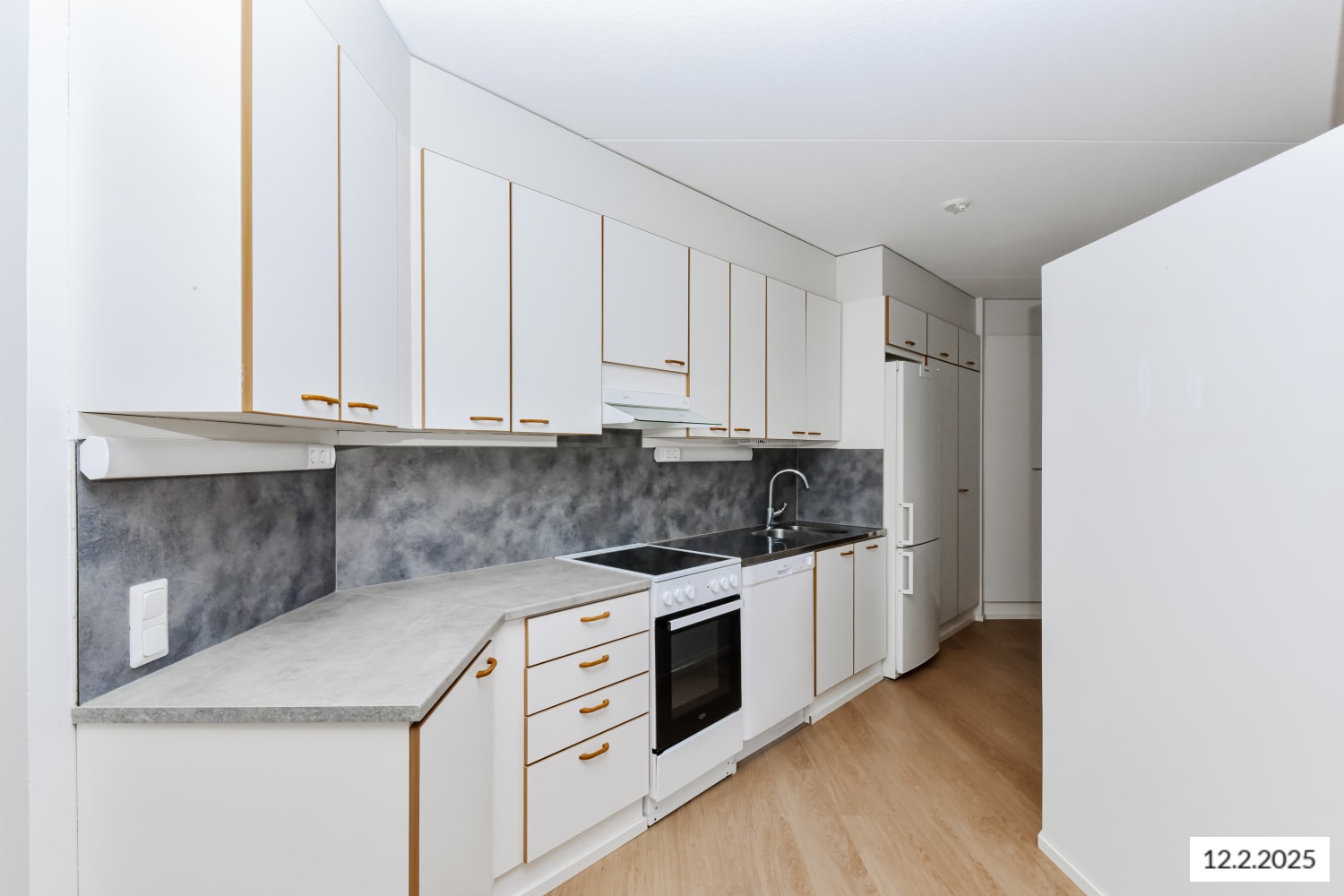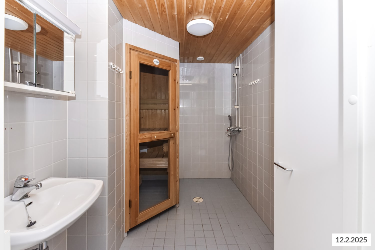 Toisen kerroksen persoonallisessa kodissa on kaikki kohdallaan: keittiön erottaa oleskelutilasta väliseinä ja ruokapöydälle on oma paikkansa ikkunan vieressä. Keittiö on hyvin varusteltu, ja esimerkiksi tiskikone löytyy. Olohuoneesta on kulku parvekkeelle ja molemmissa makuuhuoneissa on säilytystilaa. Arkea sujuvoittaa erillinen pikkuvessa. Huoneistossa on myös oma sauna. Kylpyhuoneessa on paikka ja liitännät pyykinpesukoneelle.