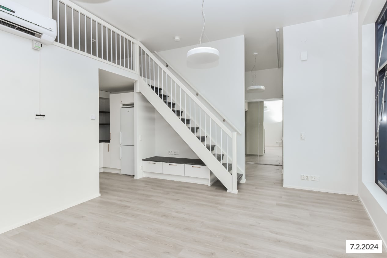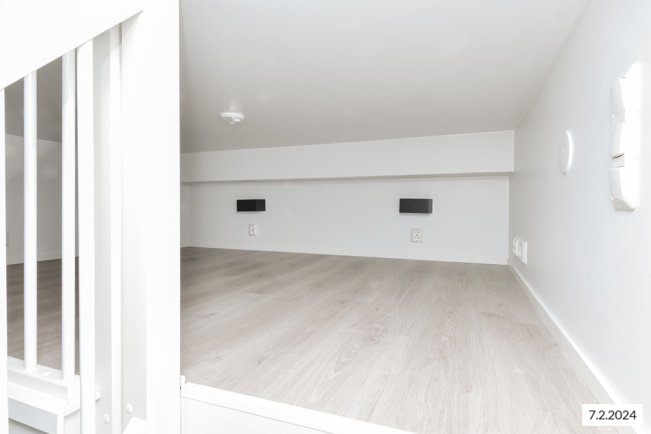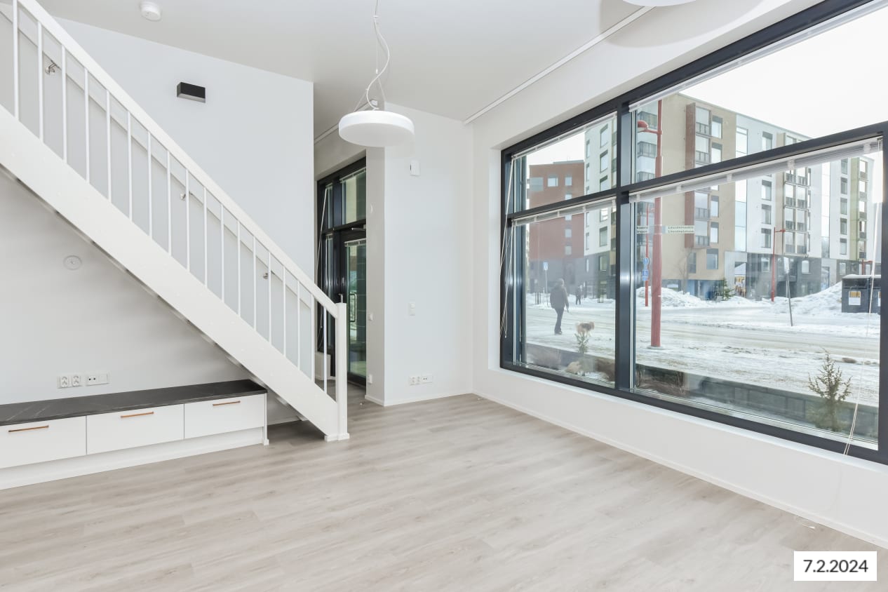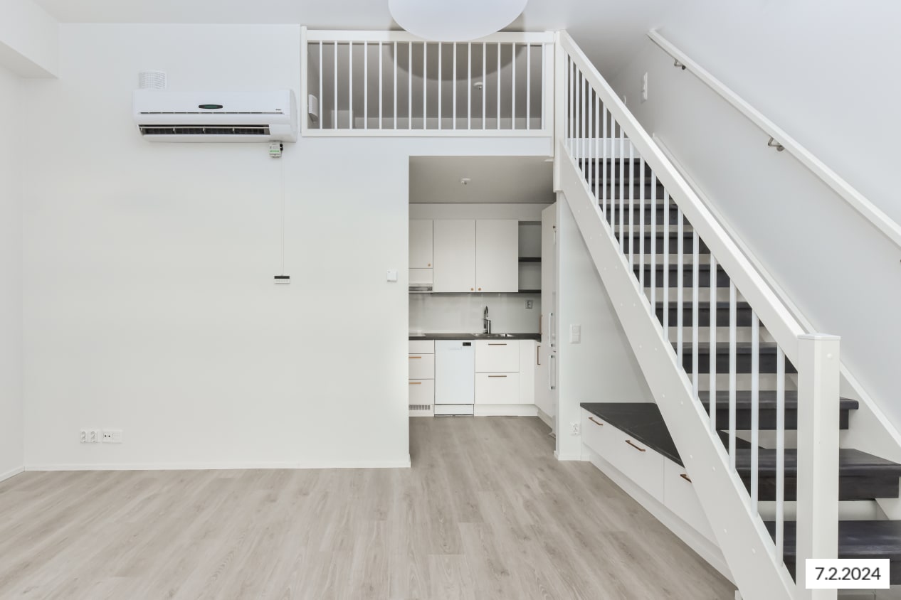 Koti avaraa tilaa arvostavalle! Valoisa kaksio sopii sekä asumiseen että yritystoimintaan. Persoonallinen oleskelutila ja erillinen huone ovat korkeaa tilaa, jossa huonekorkeus on reilusti yli kolme metriä. Näppärä keittiö on sopivasti hieman erillään olohuoneesta. Keittiön yläpuolella on parvi, joka sopii säilytystilaksi tai vaikkapa nukkumiseen. Kaappitilaa on sekä eteisessä että pienemmässä huoneessa. Parvelle vievien rappujen alla oleva tila on hyödynnetty rakentamalla sinne tunnelmallinen penkki, jonka alla on myös säilytystilaa. Näkymät sympaattisesta, loftmaisesta kodista avautuvat kahteen suuntaan Lincolninaukiolle ja Keimolankaarteelle. Autoiletko? Lincolninaukion kaikilla autopaikoilla on sähköauton latausmahdollisuus.