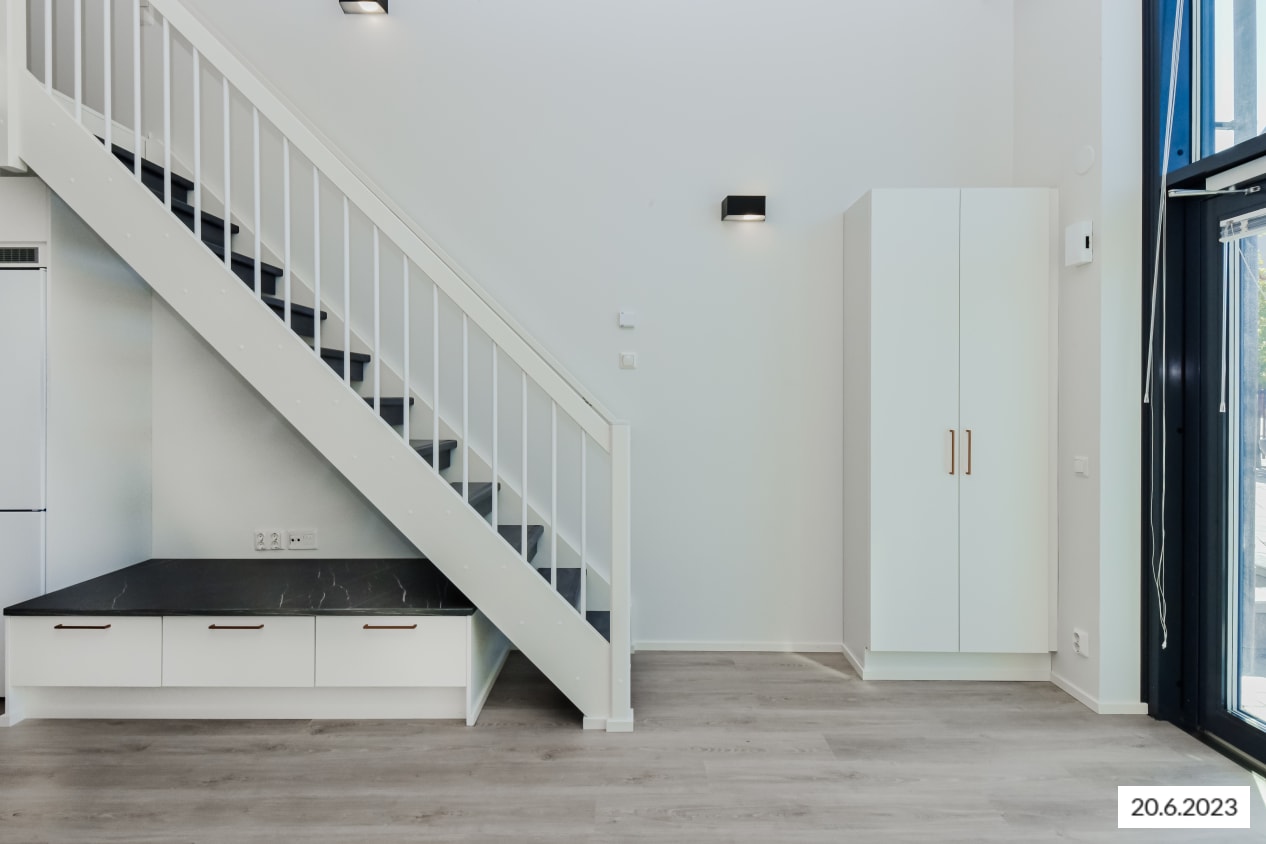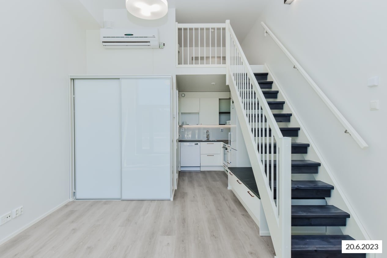 Koti avaraa tilaa arvostavalle! Valoisa, loftmainen yksiö sopii sekä asumiseen että yritystoimintaan. Oleskelualueen huonekorkeus on reilusti yli kolme metriä. Näppärä keittiö on hieman erillään olohuoneesta. Keittiötilan yläpuolella on parvi, joka sopii säilytystilaksi tai vaikkapa nukkumiseen. Parvelle vievien rappujen alla oleva tila on hyödynnetty rakentamalla sinne tunnelmallinen penkki, jonka alla on myös säilytystilaa. Näkymät sympaattisesta pikkukodista avautuvat Keimolankaarteelle. Autoiletko? Lincolninaukion kaikilla autopaikoilla on sähköauton latausmahdollisuus.