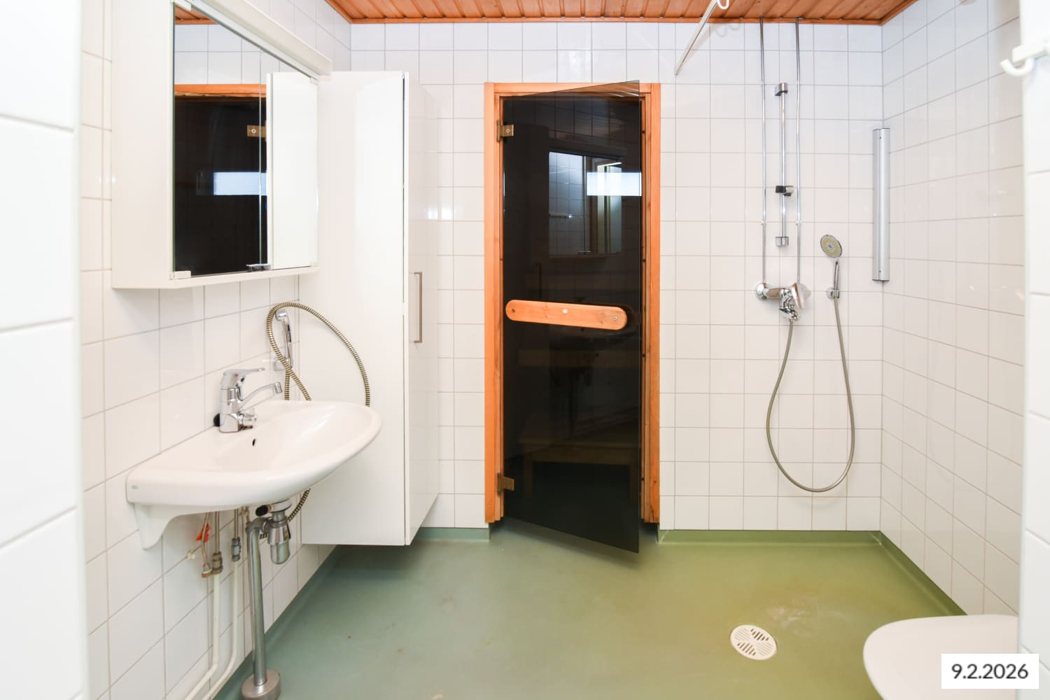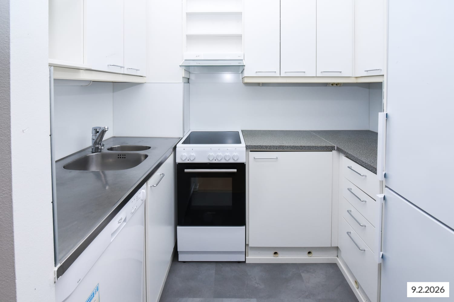 Asuinhuoneiden lattiamateriaalina on laminaatti ja kylpyhuoneen seinät on kaakeloitu. Keittokomerossa on jää-pakastinkaappi, nelilevyinen sähköliesi sekä paikka mikroaaltouunille.