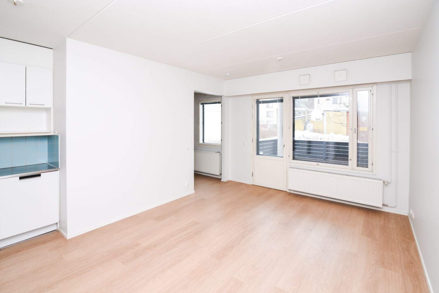 Ihanan iso piha ja aurinkoiset parvekkeet