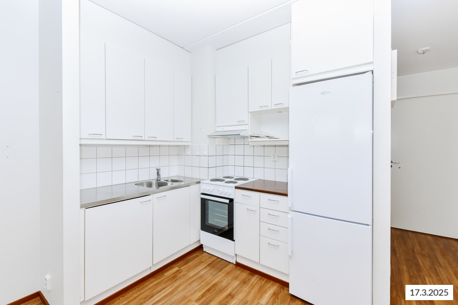 Asuinhuoneiden lattiamateriaalina on laminaatti ja kylpyhuone on kauttaaltaan kaakeloitu. Keittokomerossa on jää-pakastinkaappi ja nelilevyinen sähköliesi.