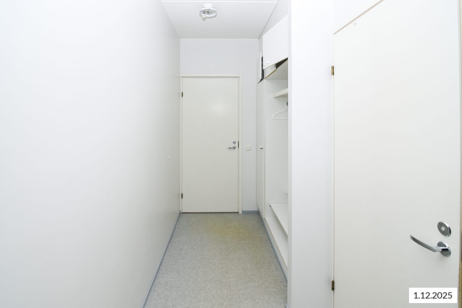 Keittokomerossa on jää-pakastinkaappi sekä paikka astianpesukoneelle ja mikroaaltouunille. Kylpyhuoneeseen mahtuu pesutorni.