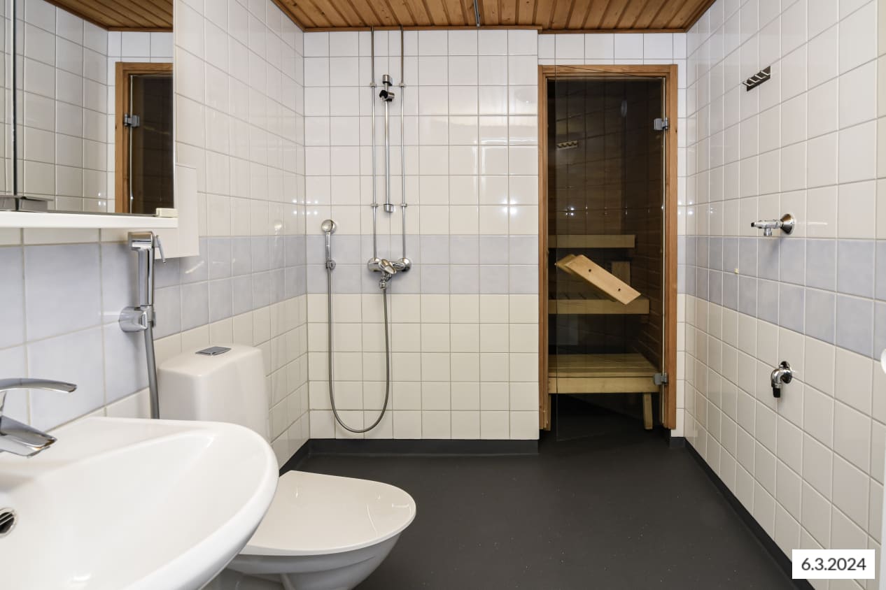 Ylimmän kerroksen kodissa on parveke, jonne voit luoda oman kesäkeitaan ja ihastella avaria maisemia. Kodin tunnelmaa lisää oma sauna, jossa voi rentoutua päivän päätteeksi.