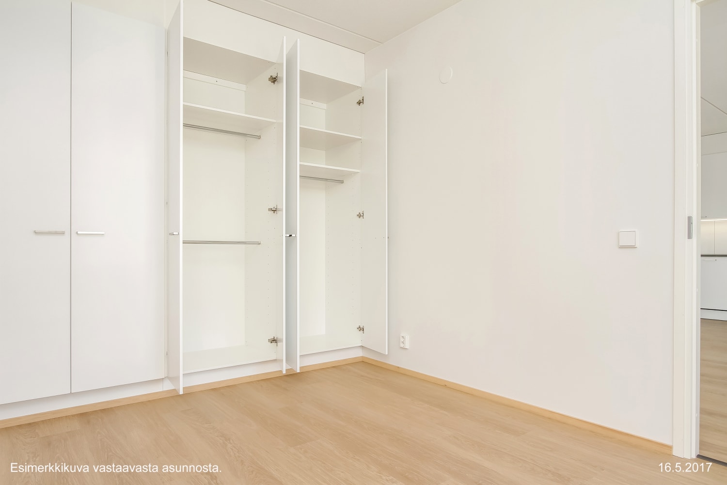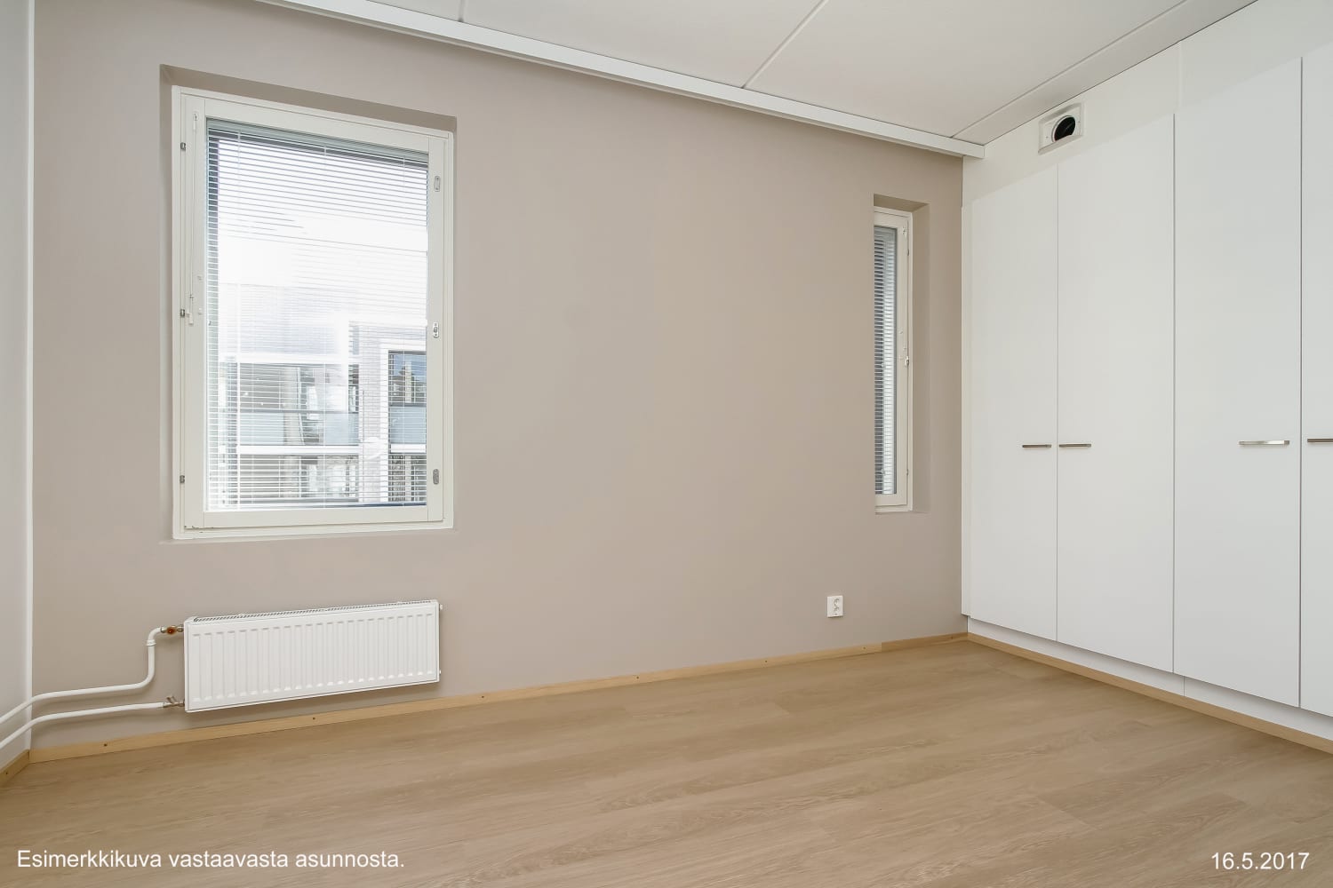 Vaaleasävyisen kaksion sydämen muodostavat avoin keittiö ja olohuone. Ruokapöytä mahtuu kodikkaasti ikkunan alle. Tilavassa makuuhuoneessa on mukavasti kaappitilaa ja ikkunat kahteen ilmansuuntaan. Lasitettu parveke aukeaa pihan puolelle.