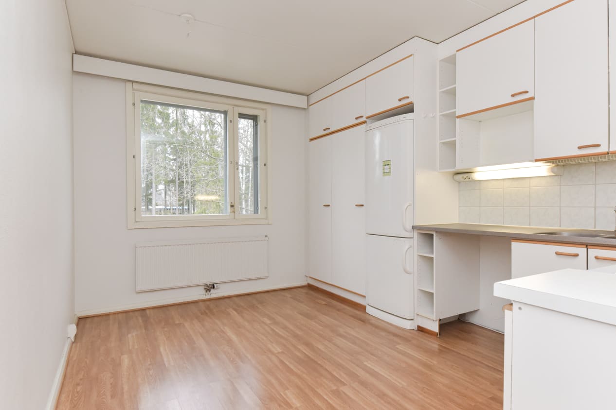 Hyvin hoidetussa pihapiirissä, lapsirikkaassa taloyhtiössä on vapautunut tilava isomman perheen koti, jossa on lasitettu eteläkaakkoon pihalle avautuva parveke. Selkeän pohjaratkaisun ansiosta asunto on helppo sisustaa ja tilavaan olohuoneeseen mahtuu koko perhe viihtymään. Asuinhuoneiden lattiamateriaalina on laminaatti. Kylpyhuoneessa on kestävä massalattia.