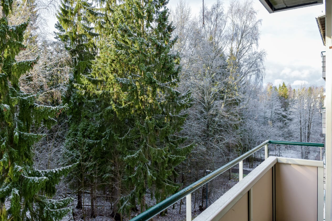 Kävelyetäisyydellä Martinlaakson juna-asemasta sijaitsevassa vehreässä pihapiirissä odottaa tilava koti esimerkiksi isommalle perheelle. Asunnon parveke avautuu ilta-aurinkoon ja keittiön ikkunasta voi seurata leikkipihan tapahtumia. Ylimmän kerroksen rauha lisää asunnon viihtyisyyttä ja korkeus luo miellyttävät maisemat parvekkeelta.