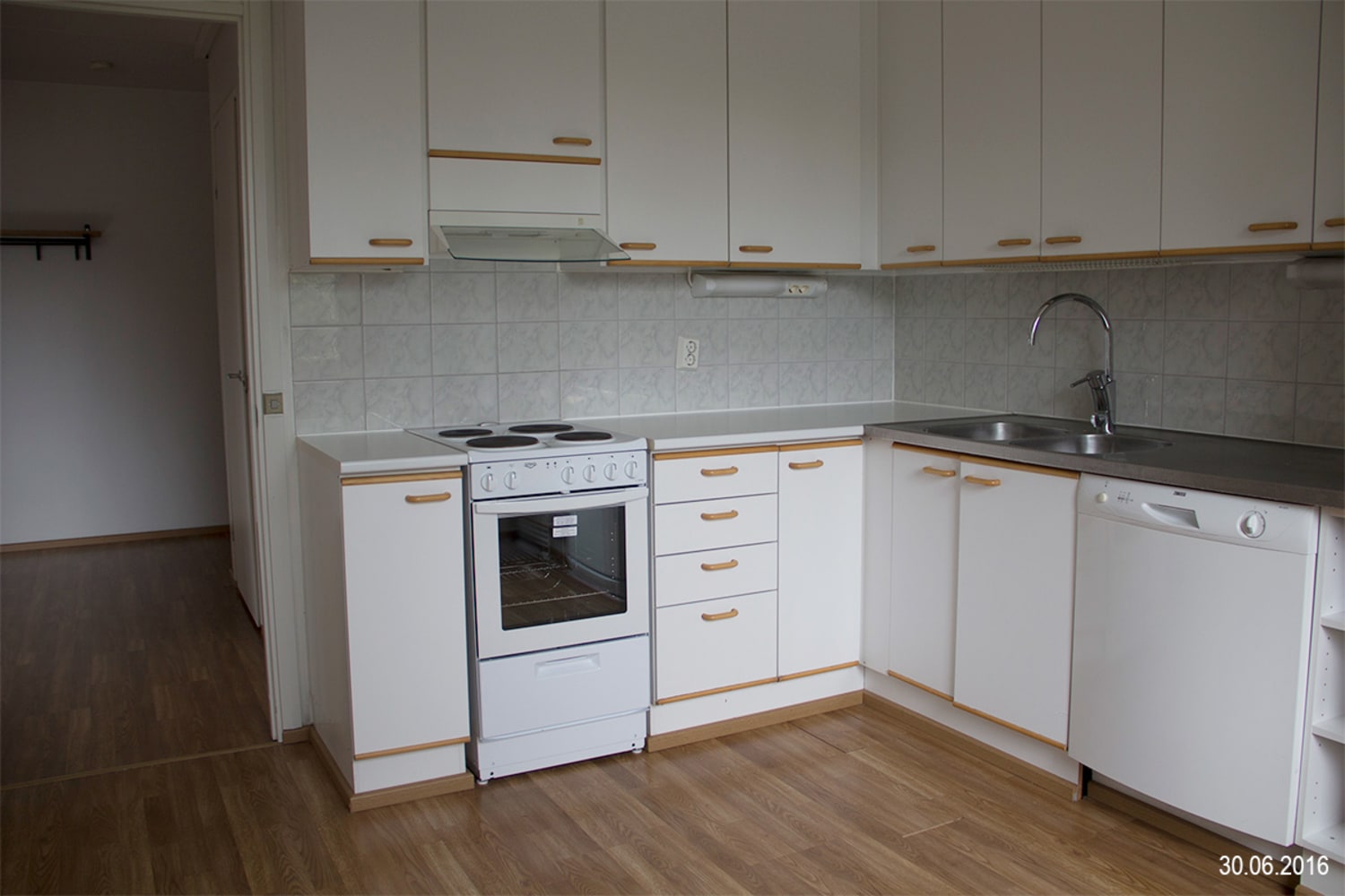 Asuinhuoneiden lattiamateriaalina on laminaatti.