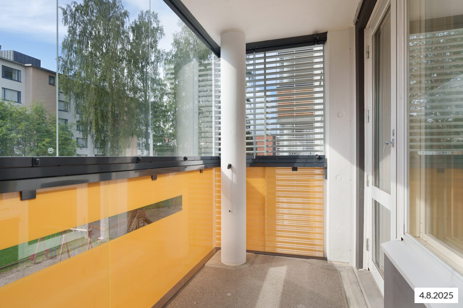 Keittiö on sopivasti hieman erillään olohuoneesta. Oleskelutilasta on käynti lasitetulle parvekkeelle, josta avautuvat sisäpihanäkymät. Miltä maistuisi kesäinen aamupala omalla parvekkeella pihapiirin kotoisia ääniä kuunnellen?