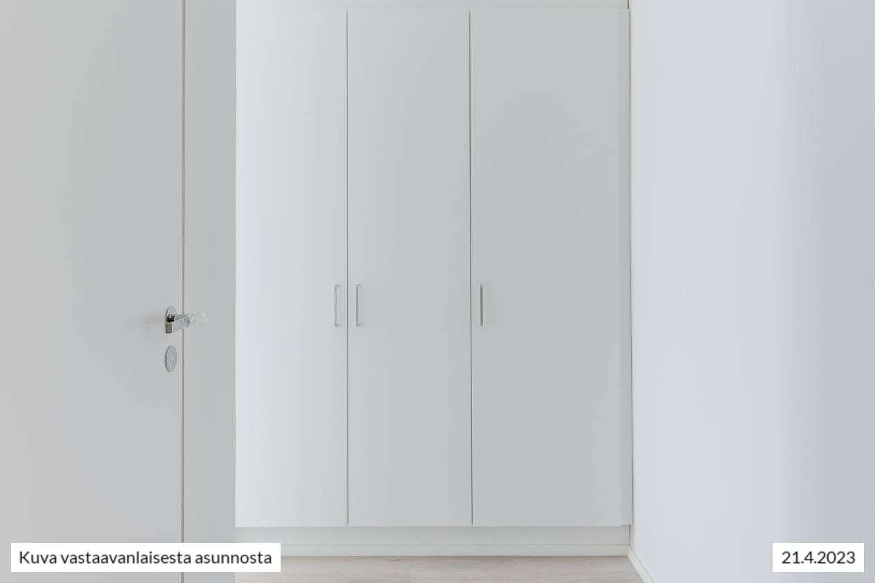 Tilavassa unelmayksiössä on kaikki: erillinen keittiö, vaatehuone, kaappien rajaama alkovi ja lasitettu parveke sisäpihanäkymin. Keittiöön mahtuu pieni ruokapöytä. Tilava oleskelutila on helppo kalustaa juuri omaan elämään sopivaksi. Entä miltä maistuisi kesäinen aamupala omalla parvekkeella pihapiirin kotoisia ääniä kuunnellen?