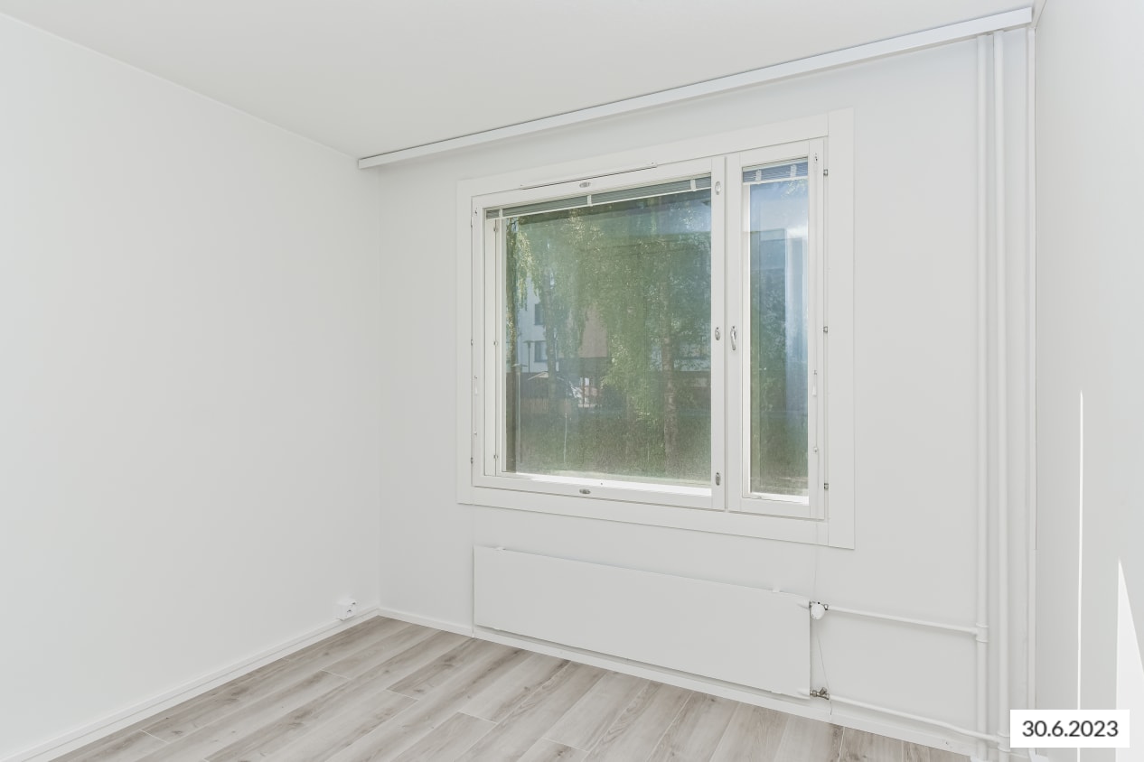 Talon päädyssä sijaitsevasta, valoisasta kolmiosta avautuu näkymä viihtyisälle sisäpihalle. Vaatehuone sisäänkäynnin yhteydessä helpottaa kausivaatteiden ja harrastusvälineiden säilytystä. Lisää kaappitilaa on molemmissa makuuhuoneissa.