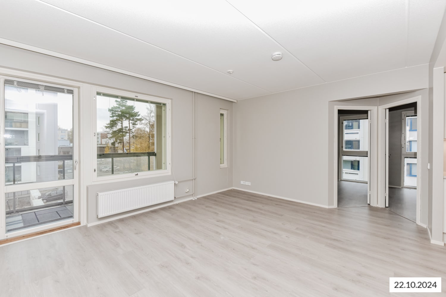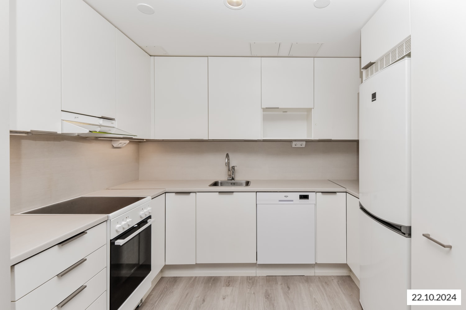 Tämän viihtyisän, neliöiltään napakan kodin sydän on olohuoneen ja keittiön muodostama viihtyisä oleskelualue. Talon päädyn puoleisiin makuuhuoneisiin tulvii luonnon valoa lattiaan asti ulottuvista ikkunoista. Lasitetulle parvekkeelle voit perustaa oman kesäparatiisisi.