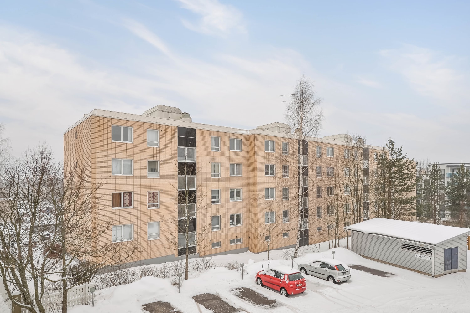Kivenheiton päässä Korson juna-asemasta sijaitsevan kerrostalon kaikissa asunnoissa on selkeän käytännölliset pohjaratkaisut ja tilavaraukset astian- ja pyykinpesukoneille. Parvekkeet avautuvat länteen Minkkikujalle päin. Osa asunnoista on osakehuoneistoja.