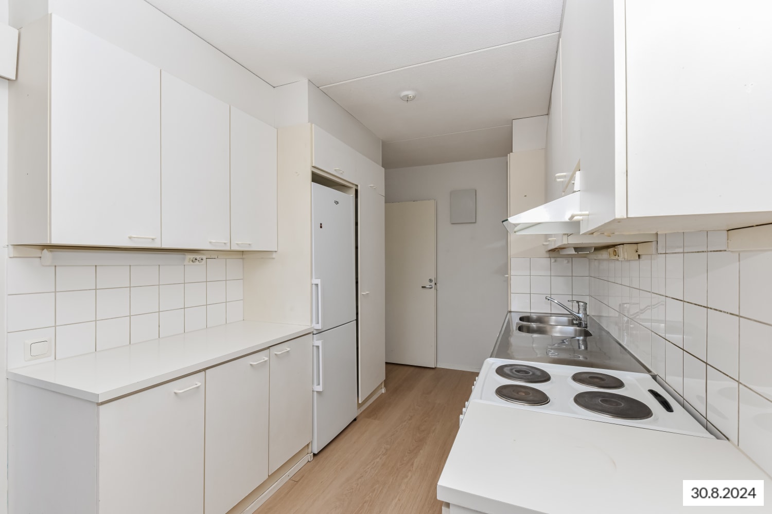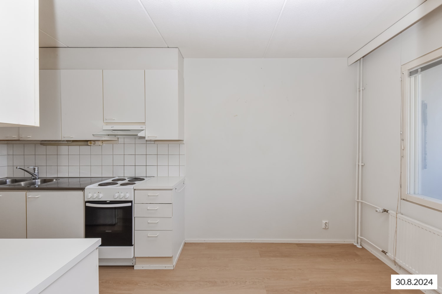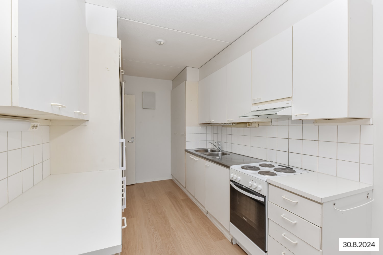 Asuinhuoneiden lattiamateriaalina on laminaatti, kylpyhuoneessa kosteiden tilojen muovimatto. Keittiössä on jää-pakastinkaappi ja nelilevyinen sähköliesi, astianpesukoneellesikin on tilaa.