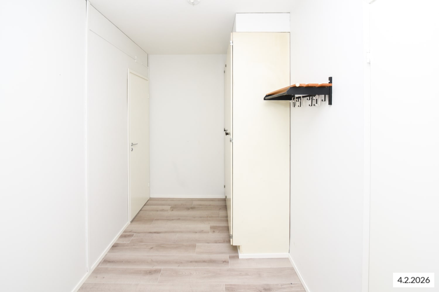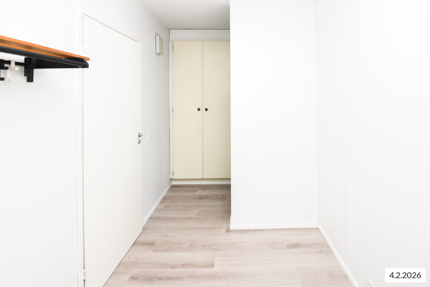 Kylpyhuoneessa on kestävä ja käytännöllinen massalattia ja tilavaraus pyykinpesukoneelle. Eteisessä ja olohuoneessa on valmista säilytystilaa. Valoisassa keittokomerossa on jääkaappi ja nelilevyinen sähköliesi.