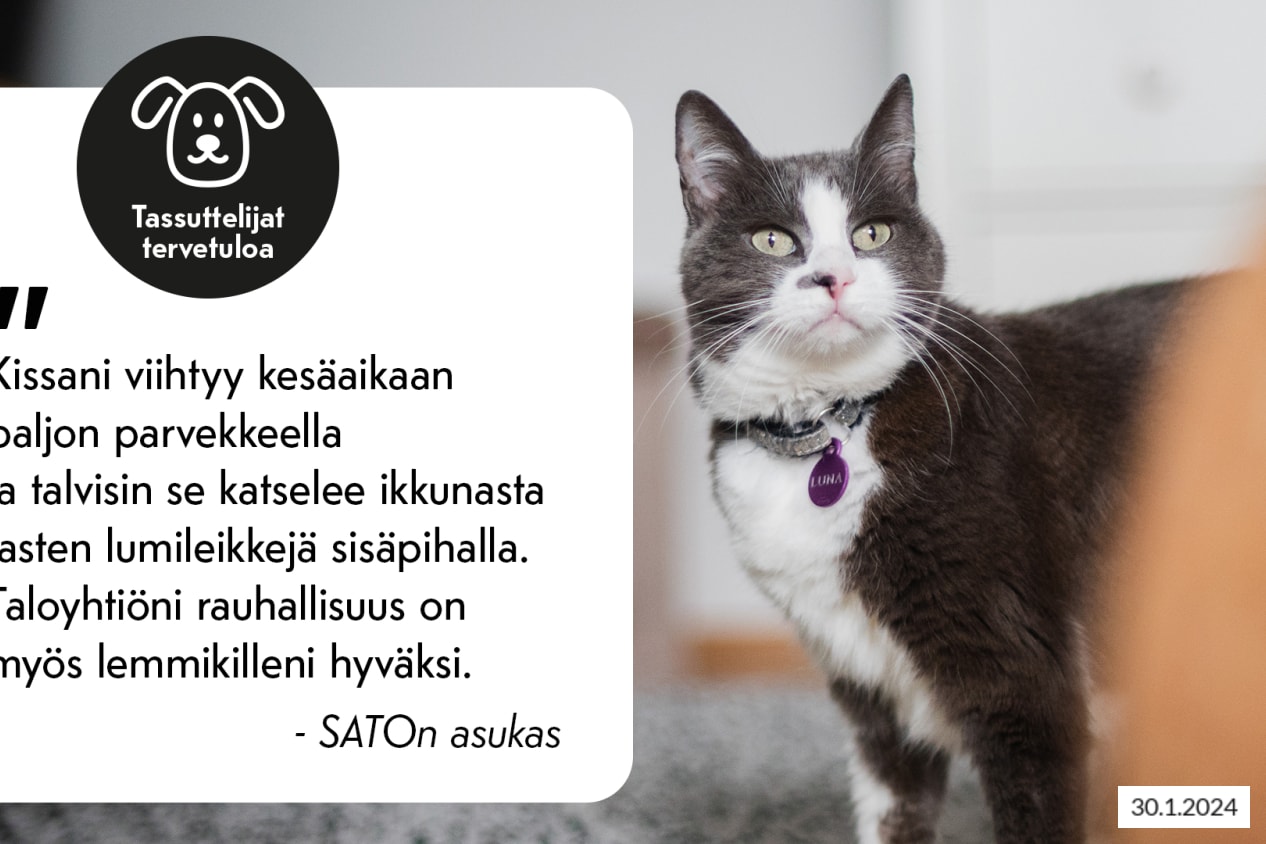 Lemmikit ovat tärkeitä perheenjäseniä ja lämpimästi tervetulleita asukkaaksi lähes kaikkiin SATOkoteihin.