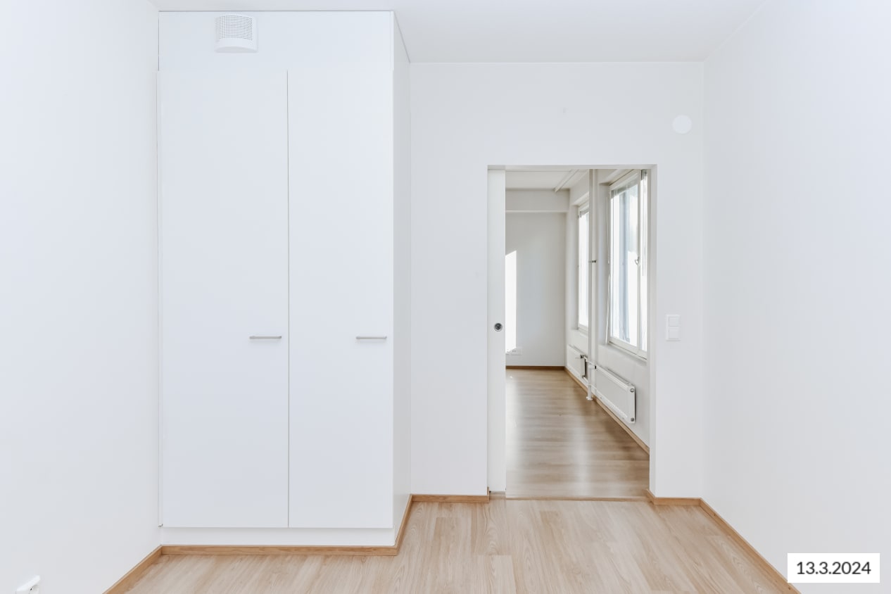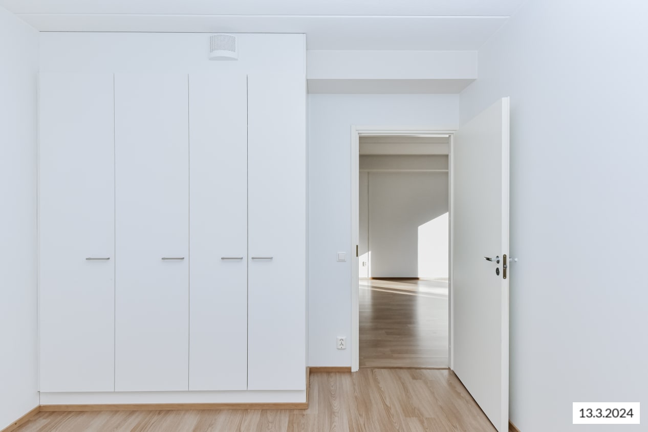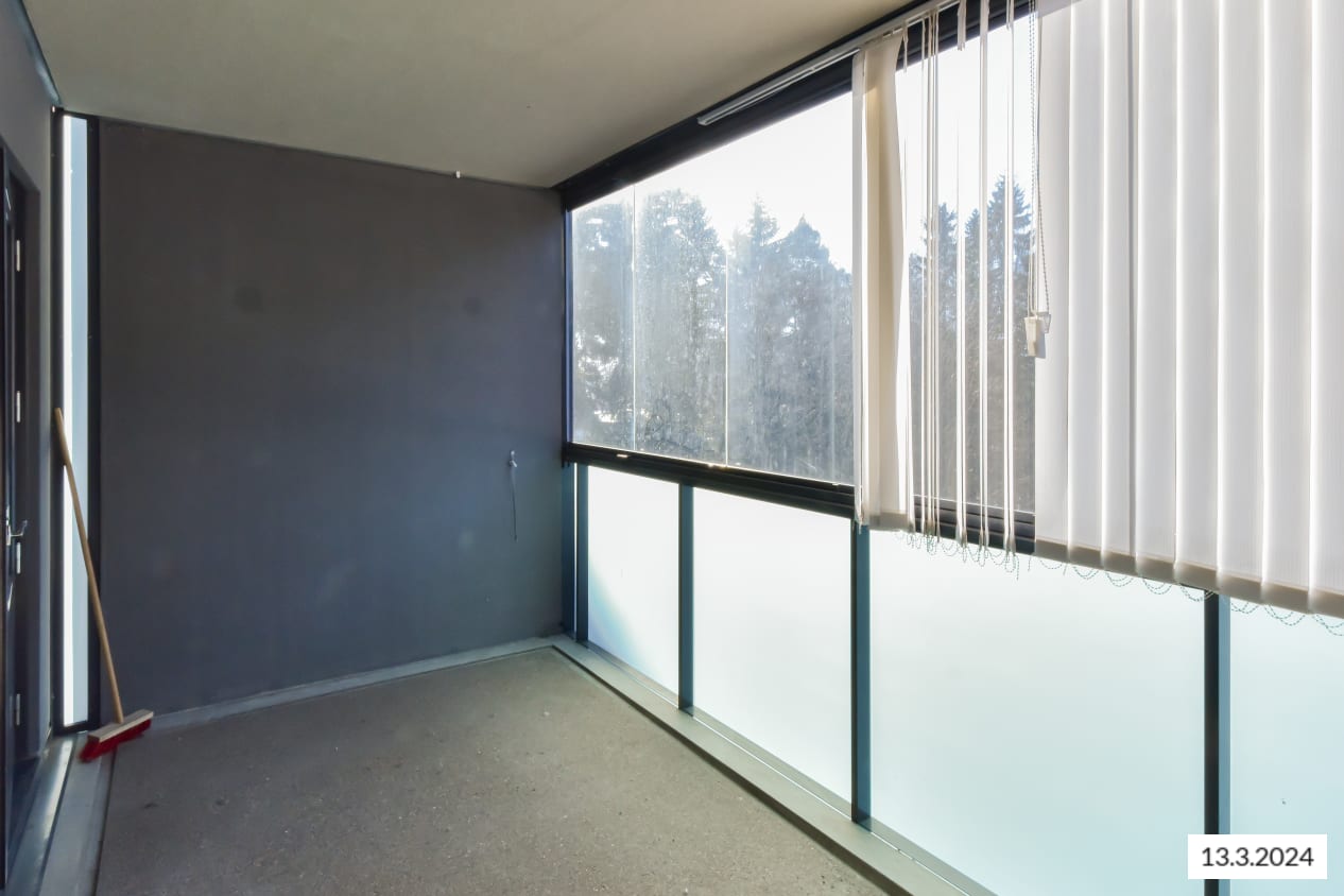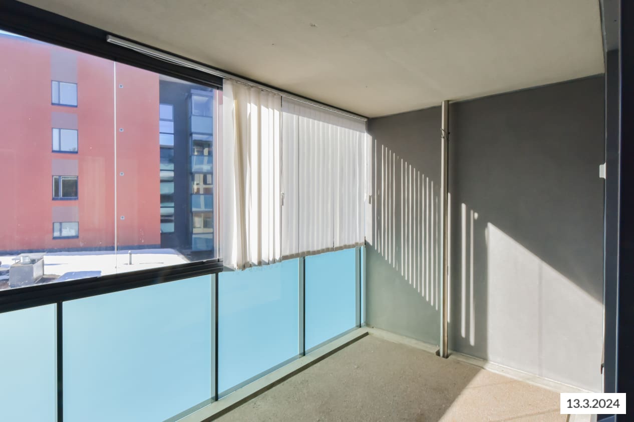 Selkeälinjainen ja käytännöllinen kulma-asunto, jonka ikkunat aukeavat kahteen ilmansuuntaan. Vaaleasävyinen, avoin keittiö muodostaa olohuoneen kanssa avaran ja viihtyisän oleskelualueen, jonka kaksi ikkunaa suuntautuu etelään. Isommasta makuuhuoneesta pääsee tilavalle ilta-auringossa kylpevälle lasitetulle parvekkeelle.
