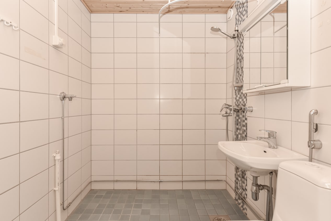 Länteen pihalle avautuva parveke ja selkeän käytännöllinen pohjaratkaisu tekevät tästä tilavasta kaksiosta pienemmälle perheelle passelin kodin. Asuinhuoneiden lattiamateriaalina on laminaatti ja kylpyhuone on kaakeloitu (ammeen tilalla suihku). Säilytystilaa löytyy ikkunallisesta vaatehuoneesta. Keittiössä on jää-pakastinkaappi ja nelilevyinen sähköliesi.