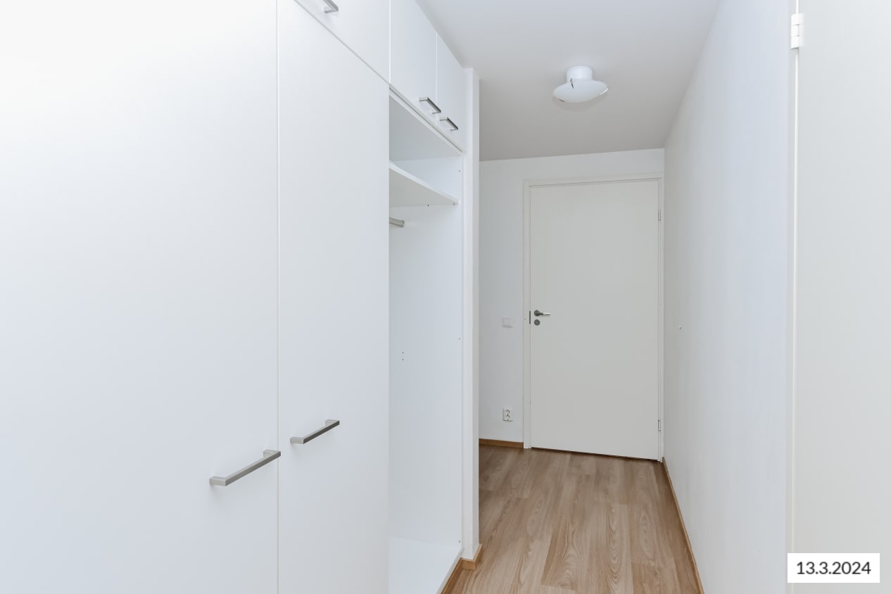 Selkeälinjainen ja käytännöllinen kulma-asunto, jonka ikkunat aukeavat kahteen ilmansuuntaan. Vaaleasävyinen, avoin keittiö muodostaa olohuoneen kanssa avaran ja viihtyisän oleskelualueen, jonka kaksi ikkunaa suuntautuu etelään. Isommasta makuuhuoneesta pääsee tilavalle ilta-auringossa kylpevälle lasitetulle parvekkeelle.