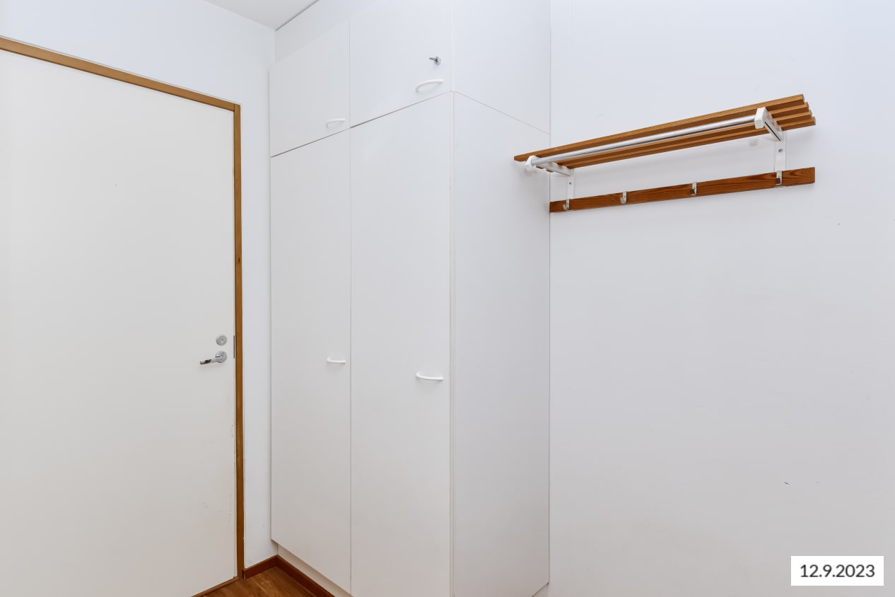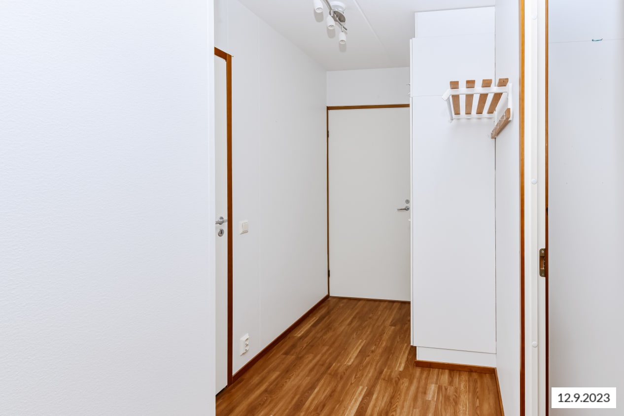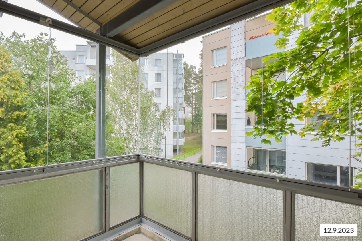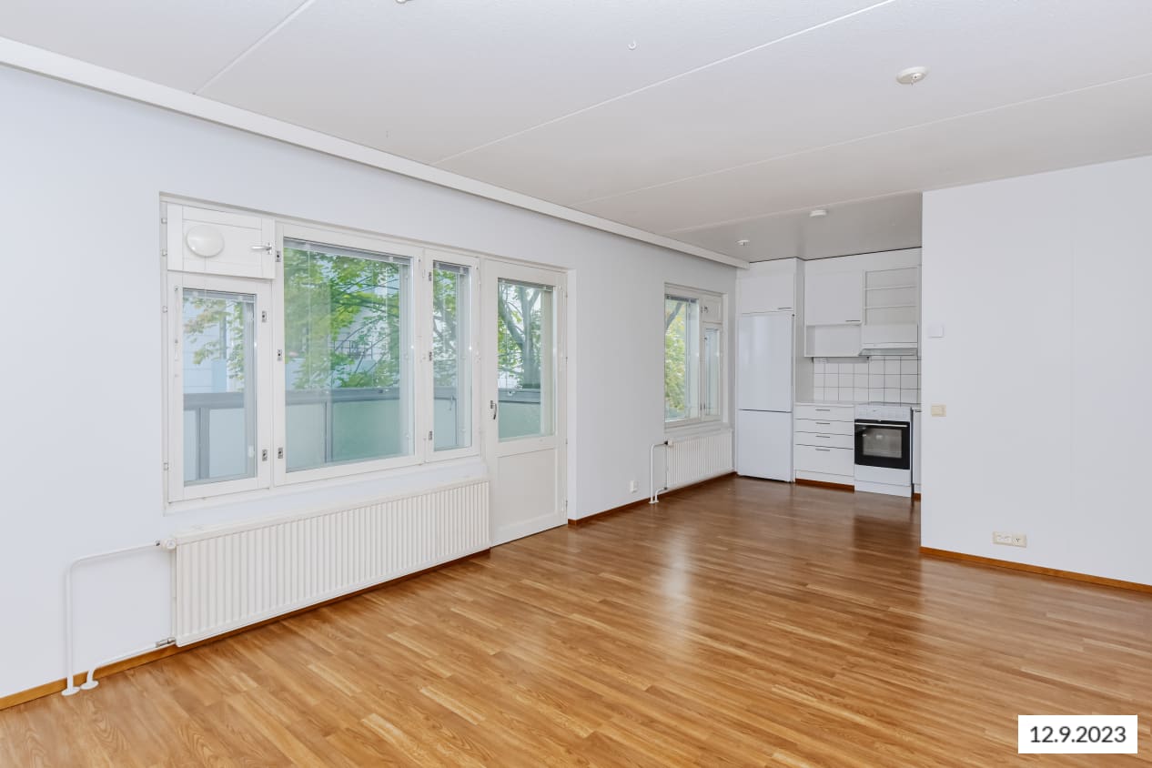Kotoisa ja valoisa kaksio omalla saunalla ihastuttaa hyvien palvelujen lähellä. Avokeittiö yhdistyy olohuoneen kanssa, luoden miellyttävän oleskelutilan. Makuuhuoneessa on valmista säilytystilaa korkeissa kaapeissa. Lattiat ovat kaunista puuparkettia ja seinät on maalattu. Lasitetulla parvekkeella voi viettää aikaa keväästä pitkälle syksyyn saakka.