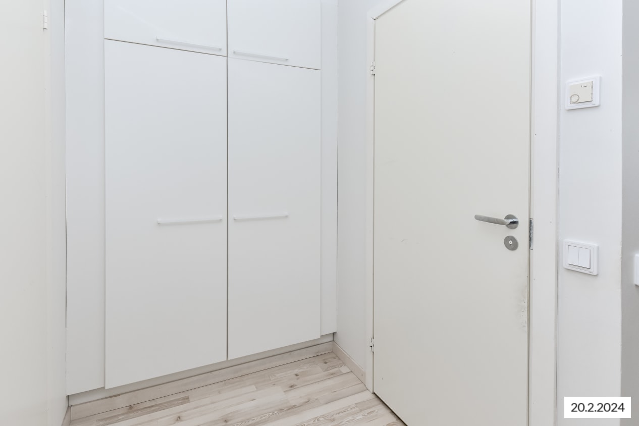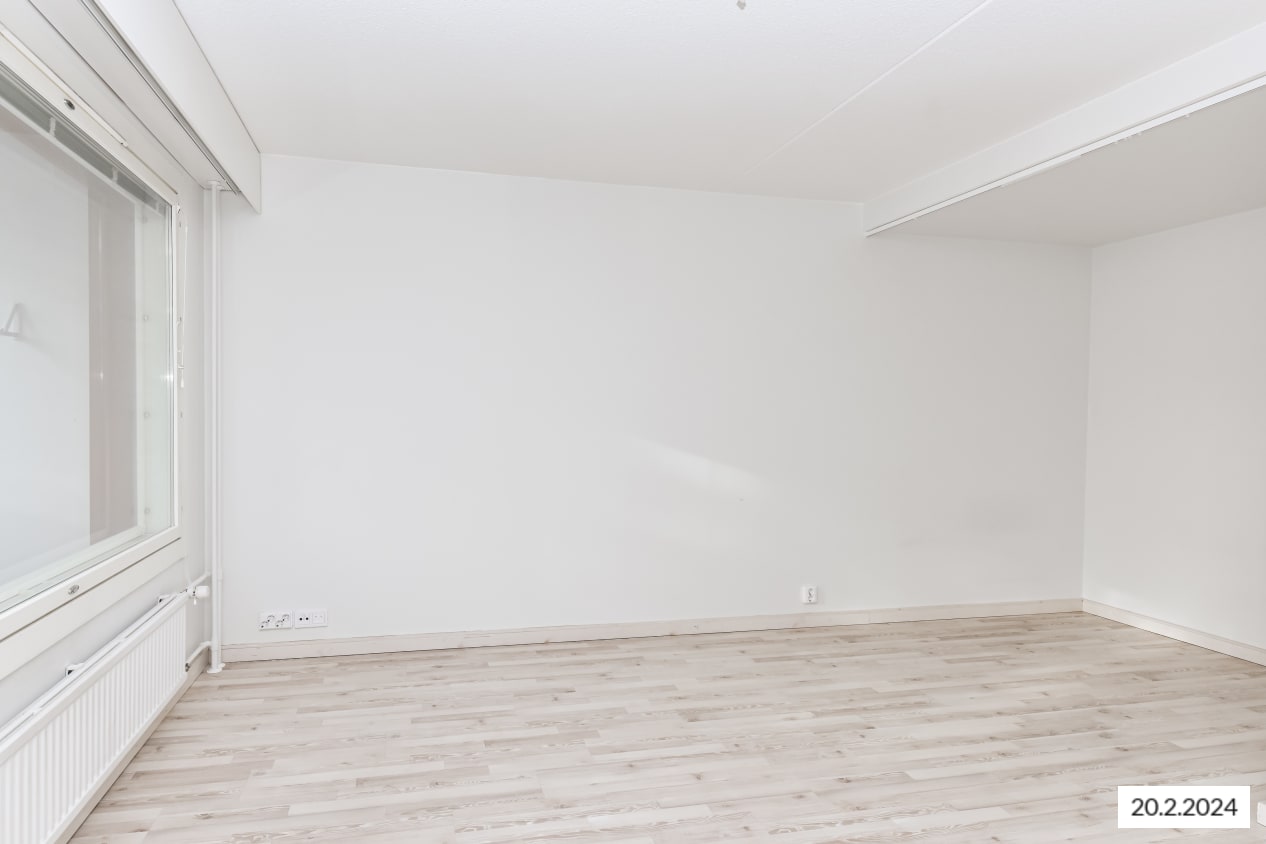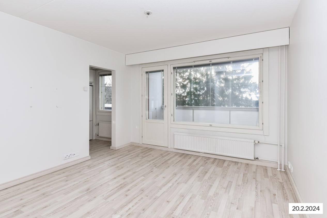 Kiva yksiö on saanut raikkaan ilmeen vuonna 2015 tehdyn täyden remontin yhteydessä. Asuintilojen lattiat ovat vaaleaa saarnin sävyistä ja kestävää laminaattia. Modernien keittiökalusteiden yläkaapit ovat valkoista ja alakaapit kauniin keltaista laminaattia. Kaappien ja työtilan väli on laatoitettu valkoisella kiiltävällä laatalla ja tiskiallas on upotettu valkoiseen laminaattityötasoon. Kauniita keittiökalusteita täydentävät hyvätasoiset kodinkoneet; jää-pakastinkaappi, keraaminen liesi ja astianpesukone. Keittiökalusteissa on tila ja mikroaaltouunille.