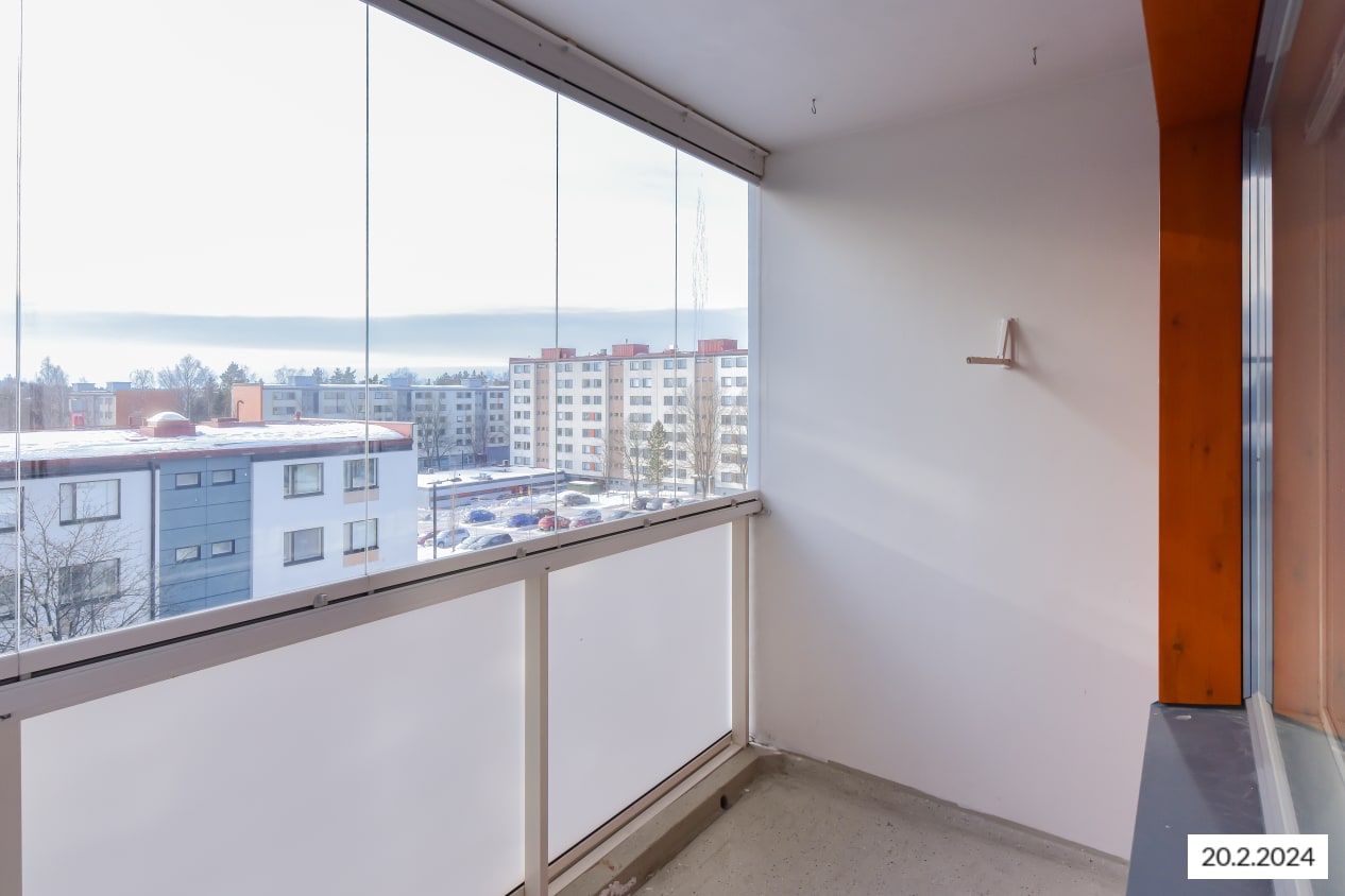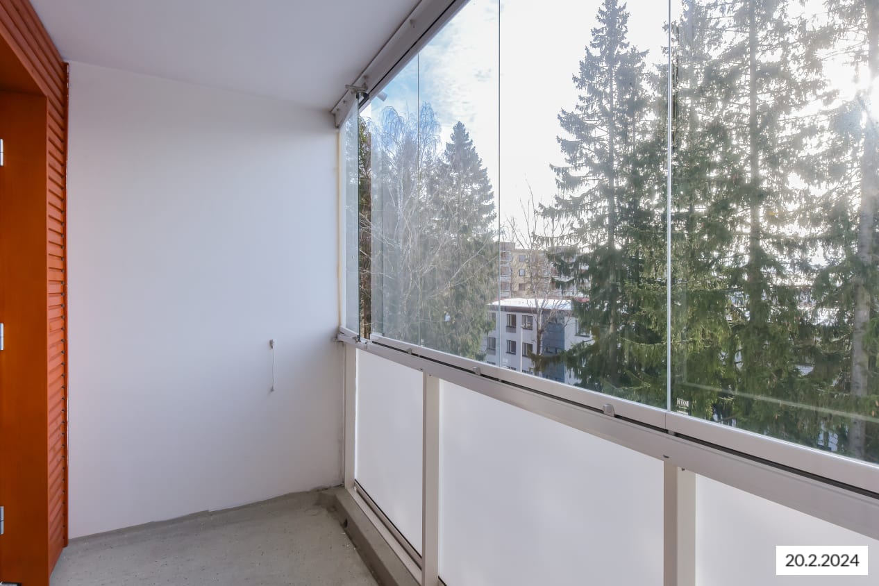 Lasitettu parveke etelään, makuualkovi