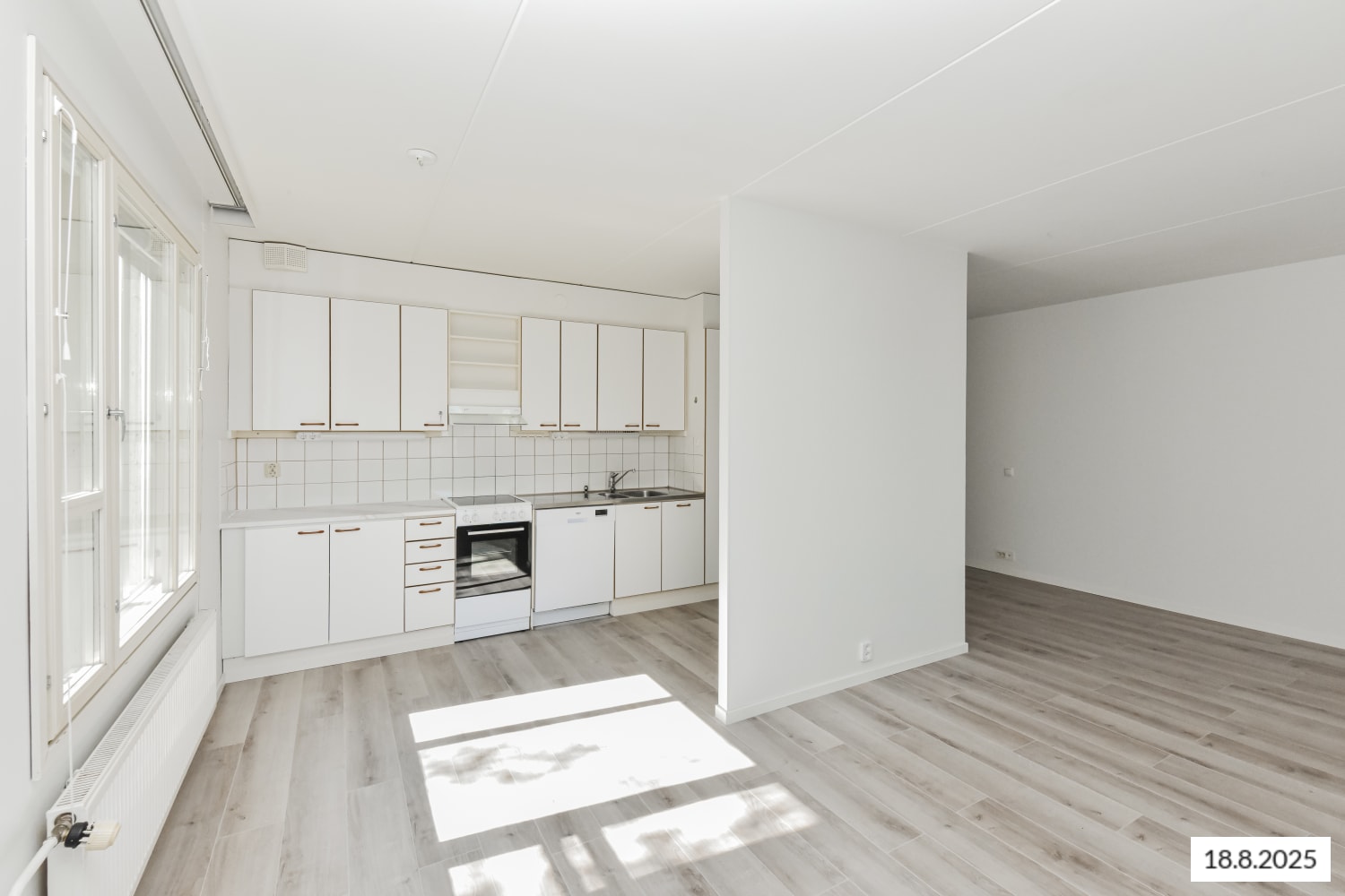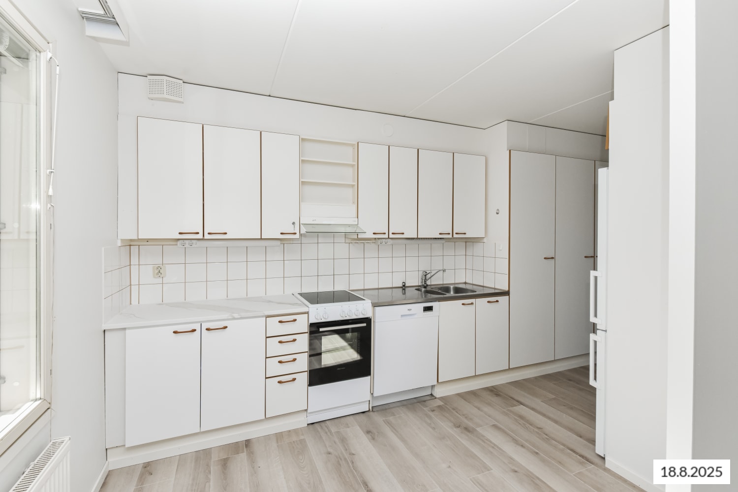 Keittiön varustukseen kuuluu arjen pelastaja astianpesukone, jääkaappipakastin, liesitaso ja uuni. Kylpyhuoneessa on liitäntä pyykinpesukoneelle. Olisiko tämä seuraava vuokrakotisi?