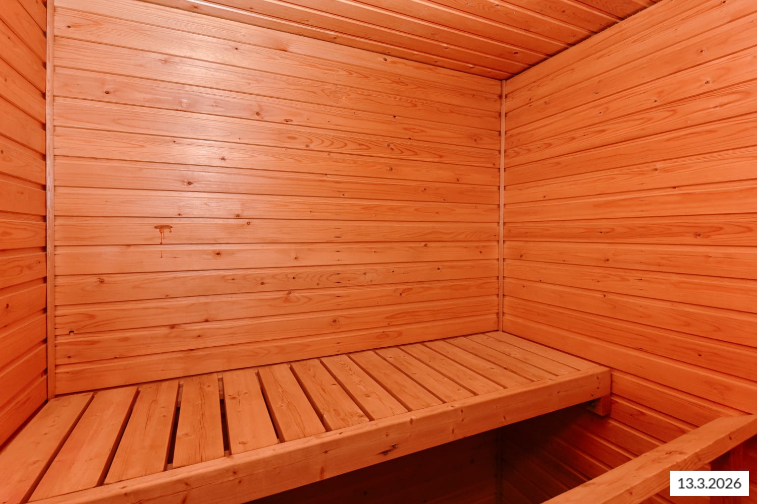 Asuinhuoneiden lattiat ovat laminaattia. Kylpyhuoneessa on kosteiden tilojen muovimatto ja kaakeloidut seinät. Keittiössä on paikka astianpesukoneelle ja kylpyhuoneessa pyykinpesukoneelle.